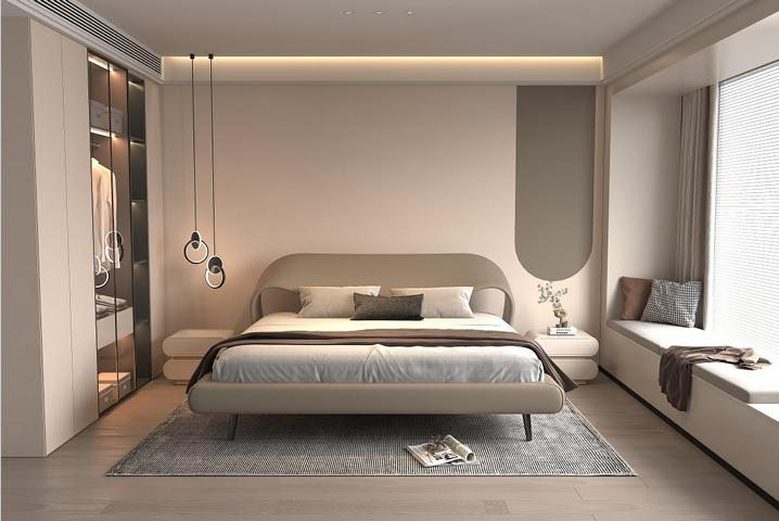 Elegantes Bett Grau Kurvendesign Polster Minimalistisch Schlafzimmer Bett