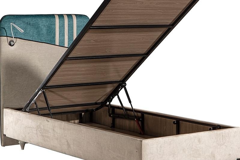 Modernes Bett mit Matratze aus Holz und Textil in Beige