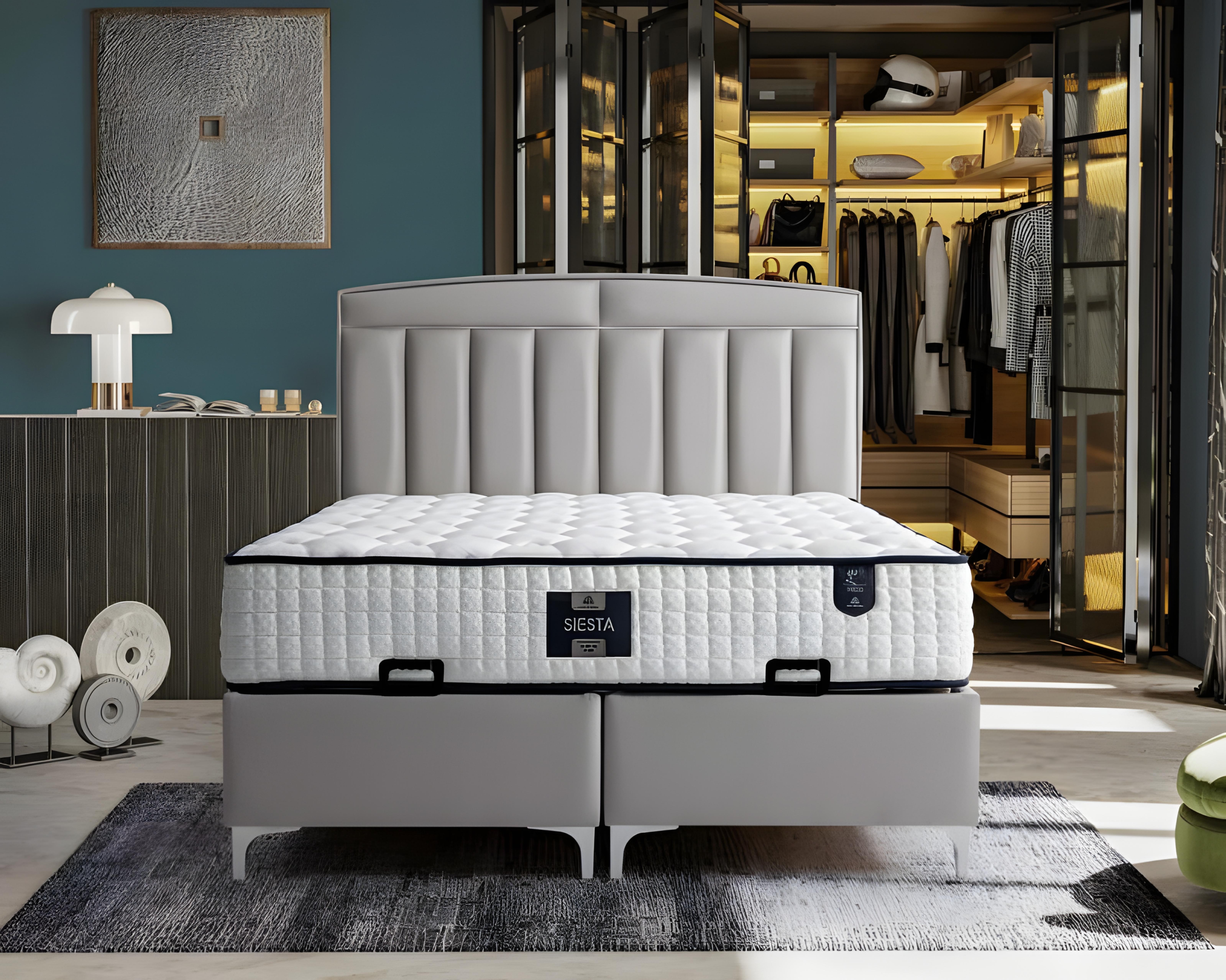 Das moderne graue Bett kombiniert zeitlose Eleganz mit einem Hauch von Raffinesse. Gefertigt aus hochwertigem Holz und umhüllt von edlem Textil, strahlt es eine subtile Luxusausstrahlung aus. Die harmonische Farbgebung in Grau fügt sich nahtlos in jede exklusive Wohnumgebung ein und schafft eine Atmosphäre der Ruhe und Erholung. Mit seiner durchdachten Konstruktion bietet das Bett nicht nur herausragenden Komfort, sondern auch eine stilvolle Lösung für Ihr Schlafzimmer. Als Ausdruck eines anspruchsvollen Lebensstils ist dieses Bett die perfekte Wahl für jene, die Wert auf Qualität und Design legen. Gönnen Sie sich ein Stück zeitgenössischer Eleganz und verwandeln Sie Ihr Zuhause in eine Oase des Wohlbefindens.