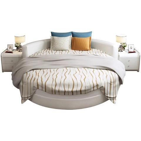 Das runde schwarze Bett mit modernem Design vereint zeitlose Eleganz und unvergleichlichen Komfort. Gefertigt aus hochwertigem schwarzen Stoff, strahlt es eine subtile Raffinesse aus, die jede Schlafumgebung in eine Oase der Ruhe verwandelt. Die geschwungene Form und die eleganten Details schaffen nicht nur ein ansprechendes visuelles Erlebnis, sondern laden auch zu entspannenden Nächten ein. Zudem bietet das integrierte Schlafsofa zusätzliche Flexibilität und Stil, ideal für anspruchsvolle Gastgeber. Dieses Möbelstück verkörpert einen exklusiven Lebensstil und ist die perfekte Wahl für alle, die Luxus und Funktionalität in ihrem Zuhause schätzen. Gönnen Sie sich eine unvergleichliche Nachtruhe in einem Meisterwerk der Innenarchitektur.