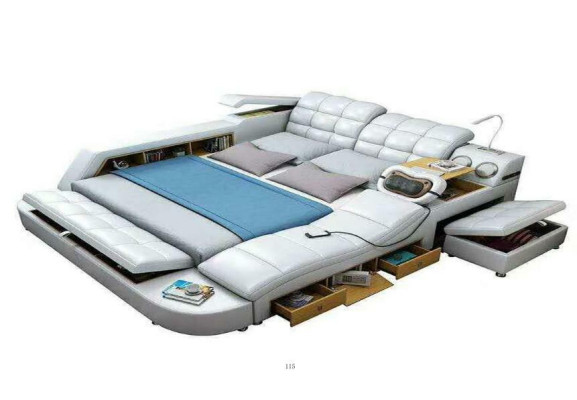 Bett Doppel Regale Leder Polster Betten Multifunktion mit Massagefunktion Neu