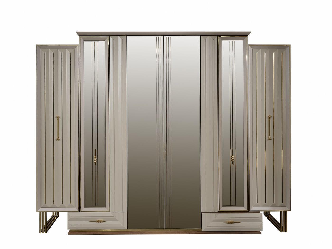 Garderobenschrank Luxus Kleiderschrank Holzschrank mit Spiegel Beige