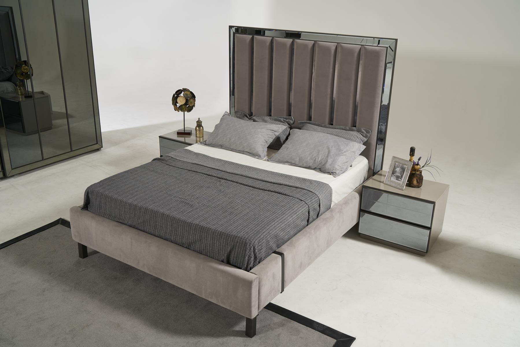 Schlafzimmer Set Bett 2x Nachttisch Hocker Doppel Betten Polster Möbel 4tlg. Neu
