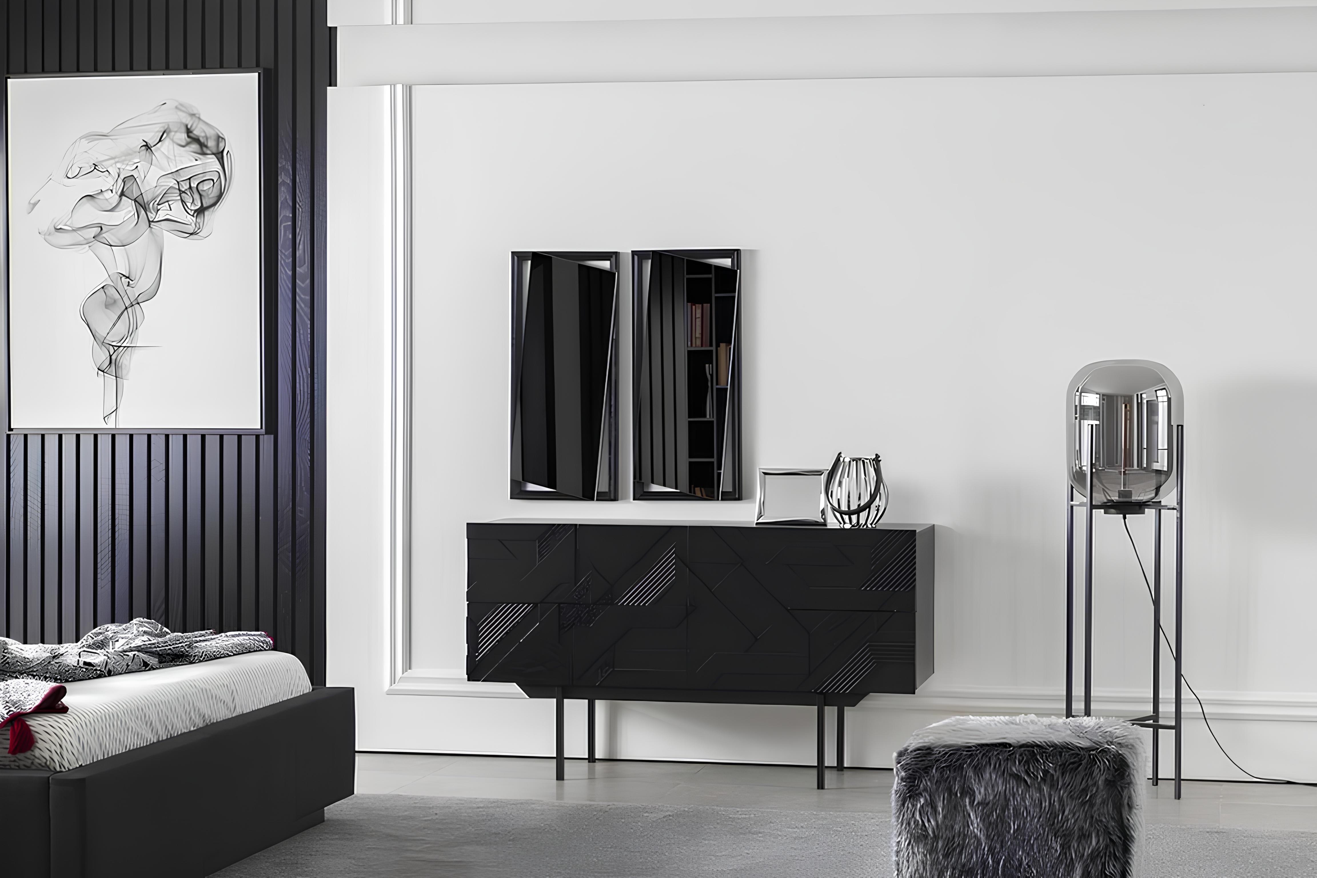 Schwarzes Schlafzimmer Luxus Möbel Kleiderschrank Kommode Nachttische 5tlg. | xlmoebel.de