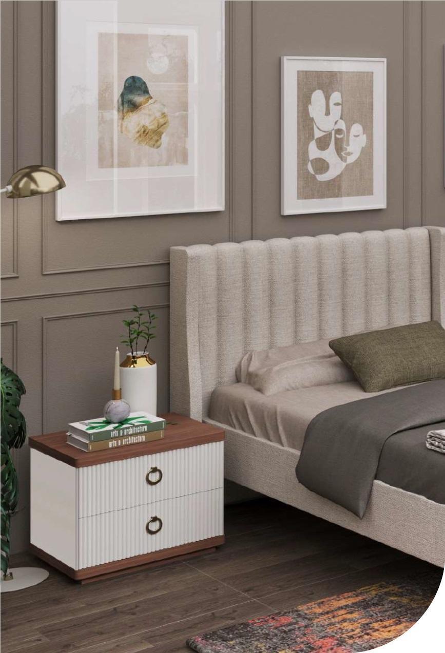 Weißer Nachttisch mit Schubladen Holzmöbel Moderne Luxus Schlafzimmermöbel