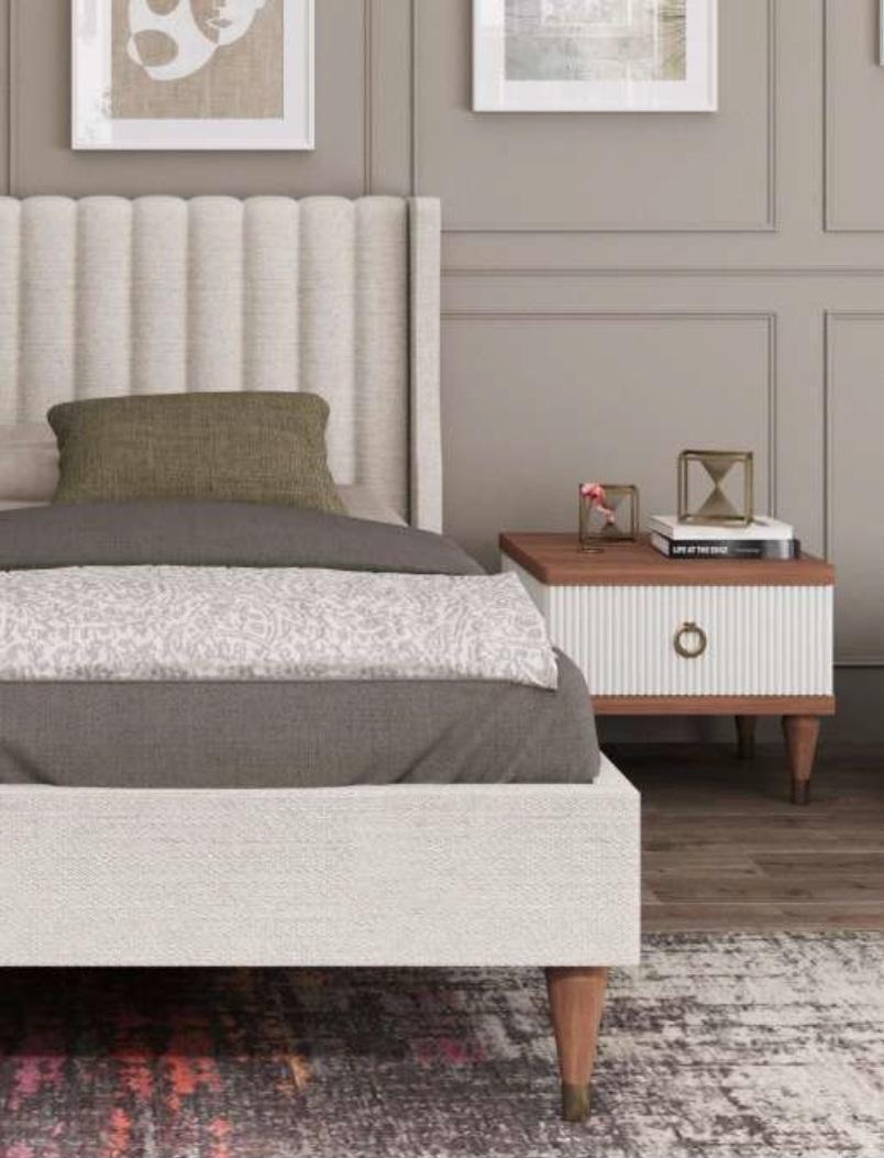 Weißer Nachttisch, Schubladen, Holzmöbel, Luxuriöse Schlafzimmermöbel