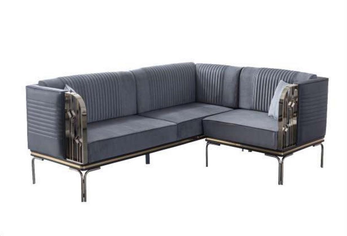 Exklusives Graues Esszimmer Set Luxus Edelstahl Tisch 2x Textil Stühle