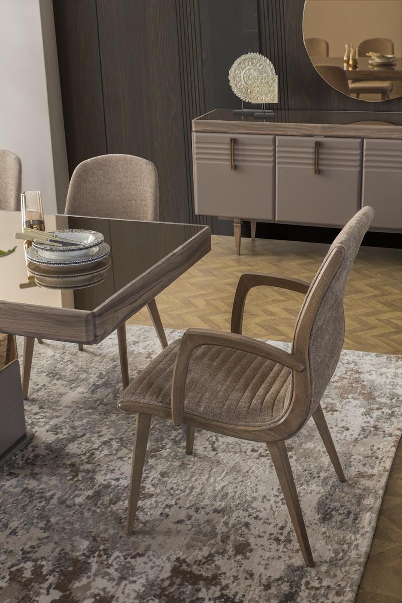 Luxus Essecke Esszimmer Esstisch Essgruppe Stühle Grau Holz Set 9tlg