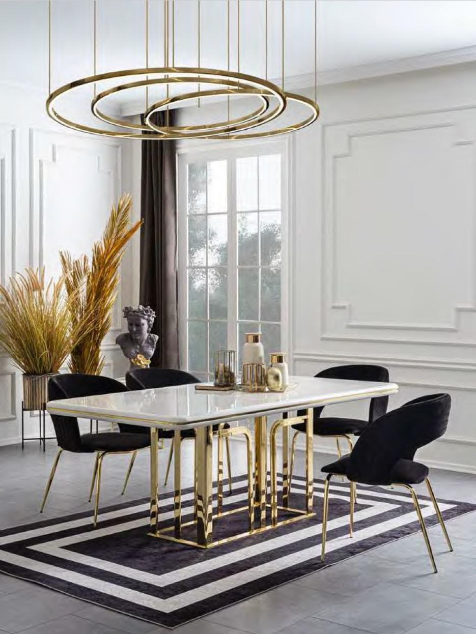 Esszimmer Garnitur Esstisch 4x Stühle Edelstahlelemente Moderne Möbel