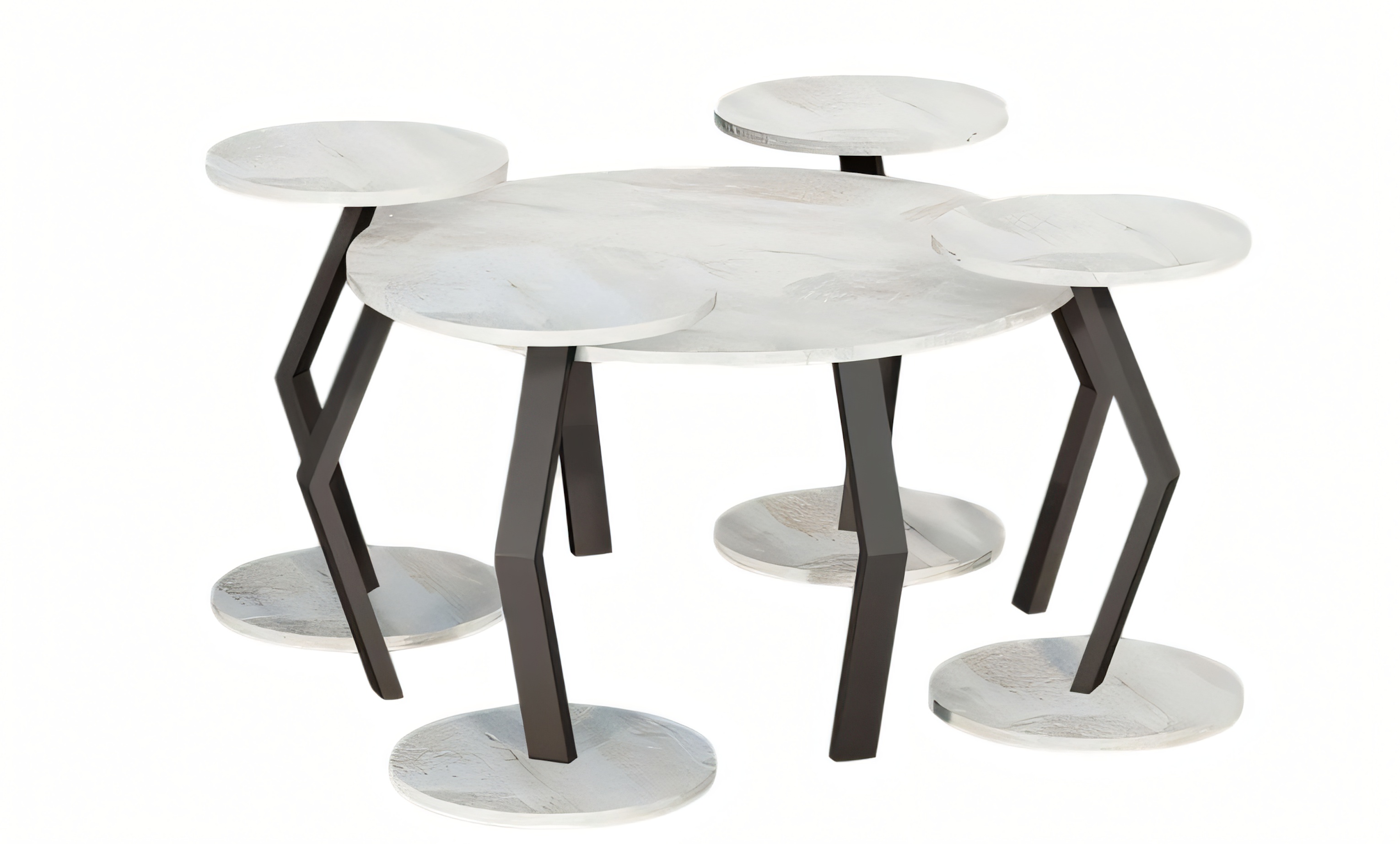Weiße Holz-Esszimmer-Tisch mit modernem Design und Beistelltischen