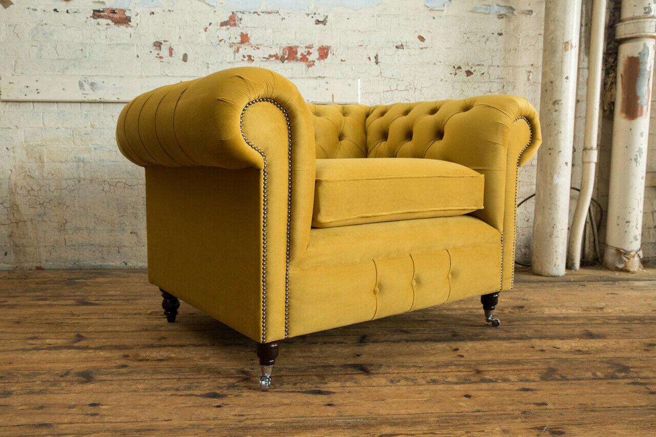 Erleben Sie ultimativen Luxus und Komfort mit dem Lounge Luxus Fernseh Club Polster Sitzer Sessel Design Couch Sofa Chesterfield. Dieses exklusive Möbelstück besticht durch seine edle Optik und hochwertige Verarbeitung. Mit Maßen von ca. 130 x 98 x 79 cm bietet der 1-Sitzer großzügigen Platz zum Entspannen. Das Premium Kunstleder sorgt nicht nur für ein stilvolles Erscheinungsbild, sondern ist auch pflegeleicht und langlebig. Optional können Sie gegen Aufpreis auf 100% Vollleder upgraden und aus verschiedenen Materialgruppen wählen. Das Innengestell aus echtem Holz und der Federkern garantieren eine stabile und bequeme Sitzgelegenheit. Wählen Sie zwischen Kristallsteinen oder Knöpfen für die Verzierung und verleihen Sie Ihrem Sofa eine individuelle Note.