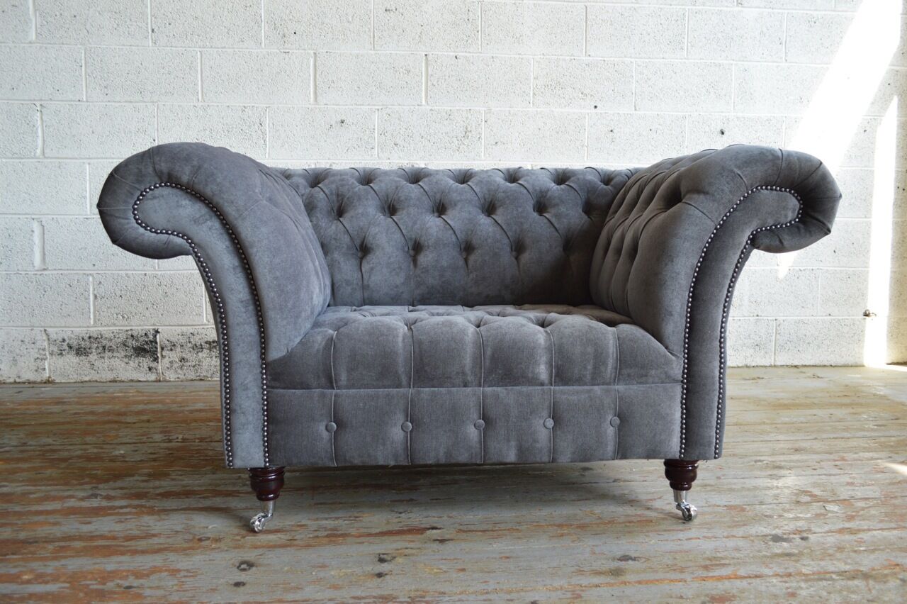 Sessel Couch Polster Sofa Chesterfield Couchen 1,5 Sitzer Einsitzer Grau Textil