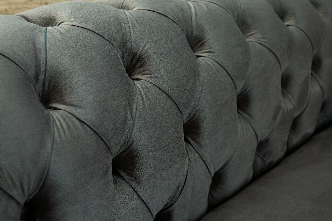 Das klassische Wohnzimmer Sofa Chesterfield Möbel Couch Sitz Polster Couchen Sofas ist ein zeitloses und elegantes Möbelstück, das Ihrem Wohnzimmer einen Hauch von Luxus verleiht. Mit Maßen von ca. 197 x 98 x 79 cm bietet der 3-Sitzer aus Premium Kunstleder ausreichend Platz zum Entspannen und Verweilen. Die hochwertige Verarbeitung und das echte Holzinnengestell sorgen für Stabilität und Langlebigkeit. Für individuelle Gestaltungsmöglichkeiten steht Ihnen eine freie Farbwahl zur Verfügung, sowie die Option gegen einen Aufpreis von 499 Euro auf 100% Vollleder zu upgraden. Das Sofa kann zudem mit einer Bettfunktion und Matratze ausgestattet werden, ideal für Gästeübernachtungen. Die Möglichkeit zur Auswahl verschiedener Materialien und Größen bietet Ihnen die Flexibilität, das Sofa an Ihre Bedürfnisse anzupassen. Veredeln Sie das Design mit optionalen Kristallsteinen oder echten Swarovski Kristallsteinen für einen glamourösen Touch.