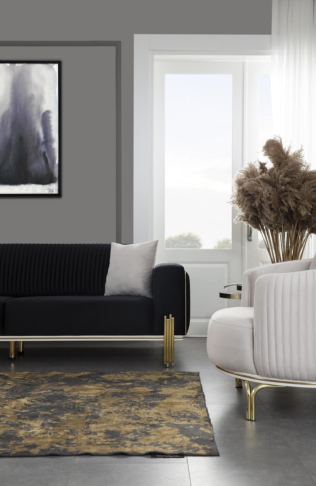Moderner Schwarzer Dreisitzer mit Edelstahl Polster Couch Sofas Design