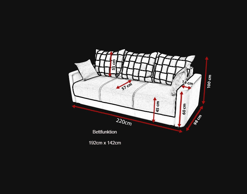 Bettfunktion: ca. 192 x 142 cm Liegefläche (im Preis enthalten)
