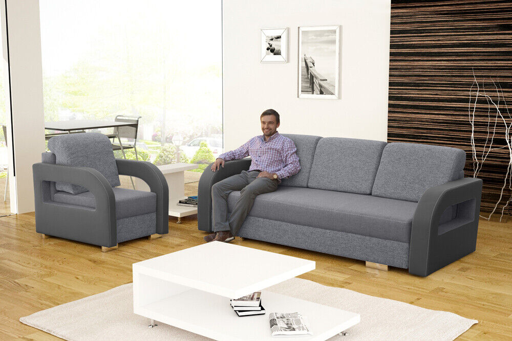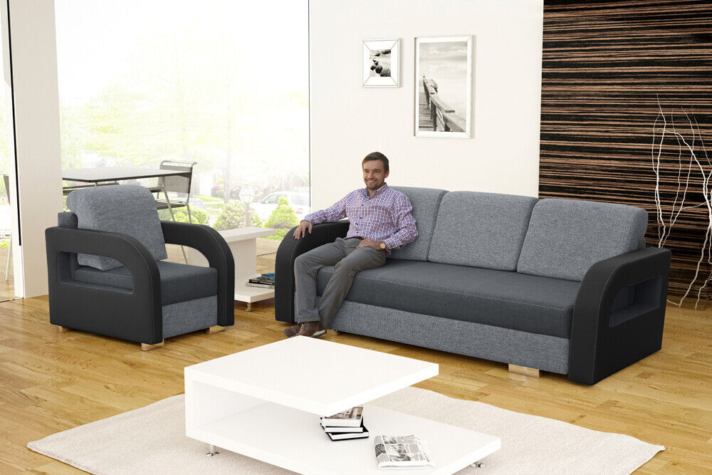 Schlafsofa Klappcouch 3-Sitzer Schlaffunktion + Bettkasten Couch Design Sofa