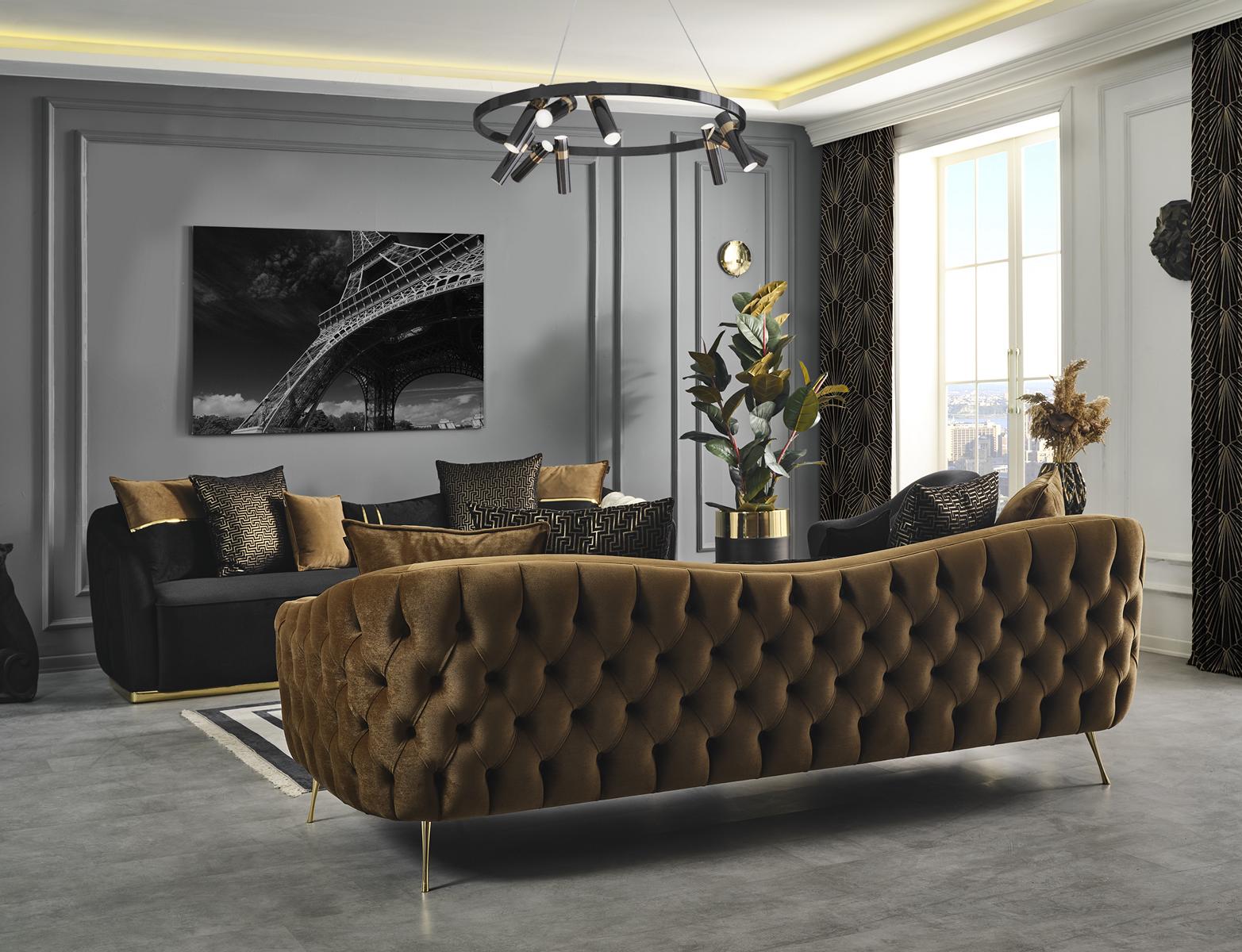 Sofa 3 Sitzer Braun Textil Wohnzimmer Design Couch Modern Neu Luxus