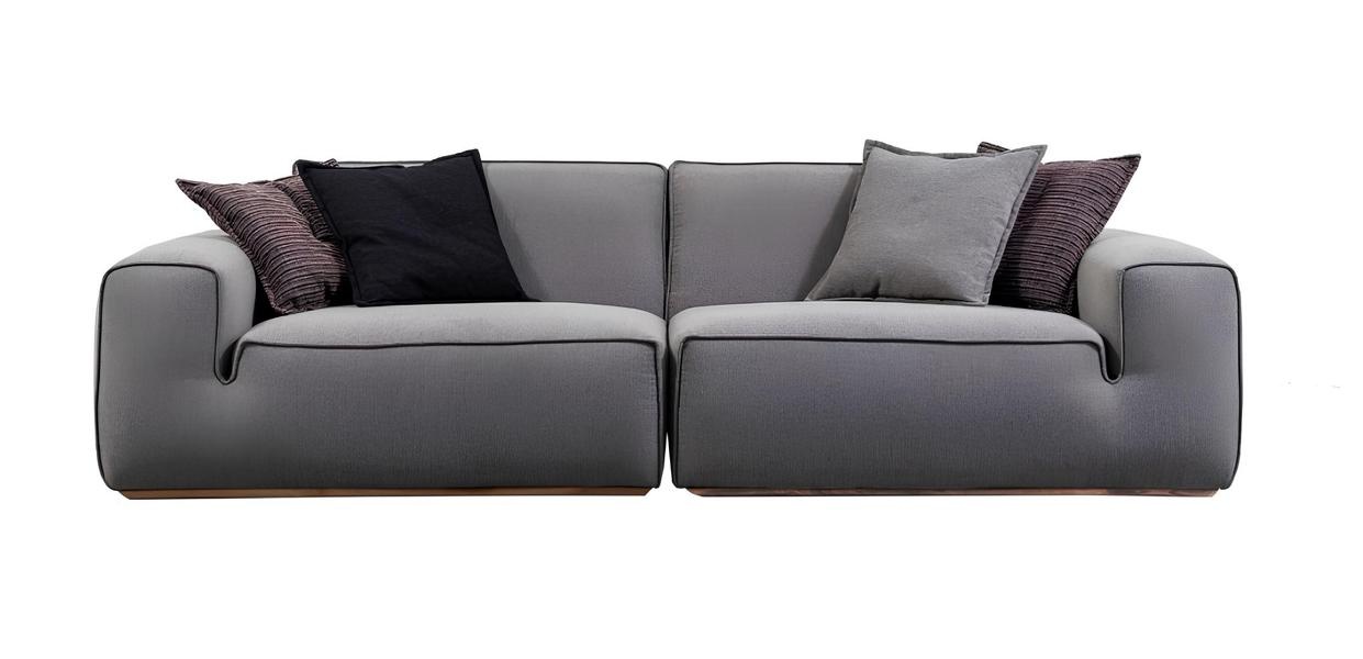 Das Sofa in modernem Design vereint Ästhetik und Komfort auf höchstem Niveau. Mit seinem eleganten grauen Stoff strahlt es zeitlose Raffinesse aus und fügt sich mühelos in jede exklusive Wohnumgebung ein. Die klaren Linien und die durchdachte Formgebung unterstreichen den modernen Charakter, während die großzügigen Polster für unvergleichlichen Sitzkomfort sorgen. Dieses Möbelstück ist mehr als nur eine Sitzgelegenheit; es ist ein Statement für einen gehobenen Lebensstil. Seit über 20 Jahren steht unsere Marke für luxuriöse Möbel, die nicht nur Räume, sondern auch Emotionen gestalten. Wählen Sie dieses Sofa, um Ihrem Zuhause eine Aura von Stil und Eleganz zu verleihen.