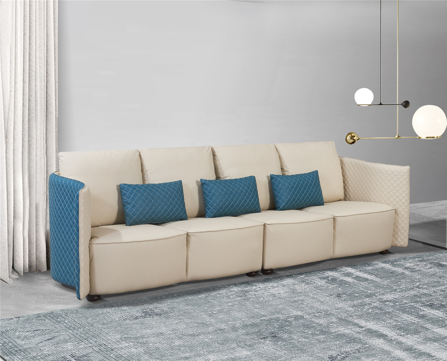 Erwerben Sie jetzt unser luxuriöses 4-Sitzer-Sofa aus unserer exklusiven Designerkollektion! Dieses stilvolle Luxus-Polstersofa wird aus hochwertigem Premium-Lederfaserstoff (70% Leder / 30% Polyester) hergestellt und ist in verschiedenen Farben erhältlich. Wählen Sie aus einer Vielzahl von Farben wie Smaragdgrün, Azur oder Lavendelblau, um Ihrem Wohnraum eine elegante Note zu verleihen. Mit Maßen von ca. 310 x 90 x 77 cm und einer komfortablen Sitzhöhe von 40 cm bietet dieses Sofa ausreichend Platz und Bequemlichkeit für gemütliche Abende. Das Innengestell aus echtem Holz und der hochwertige Federkern sorgen für Stabilität und Langlebigkeit. Optional können Sie das Sofa in verschiedenen Materialgruppen wie Premium Echtleder, Textilstoff oder Vollleder ergänzen. Lassen Sie sich von der Qualität des italienischen Rindsleders begeistern und genießen Sie die Hochwertigkeit dieses exquisiten Möbelstücks. Holen Sie sich jetzt dieses Luxus-Sofa in Ihrem bevorzugten Farbton und verwandeln Sie Ihr Wohnzimmer in eine Wohlfühloase!