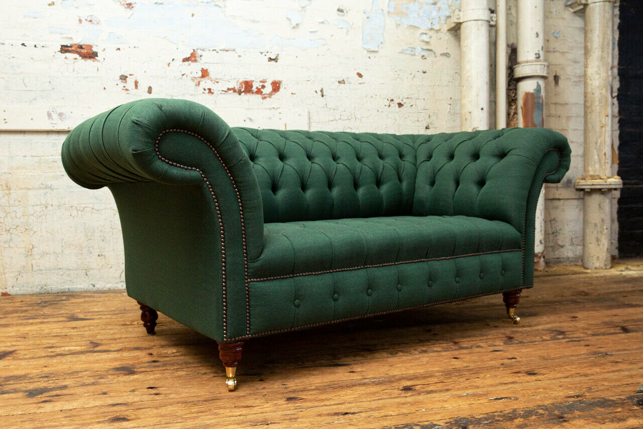Das klassische Polstermöbel Chesterfield Grüne Couch Textil Leder Stoff Sofa 2-Sitzer vereint zeitlose Eleganz und modernen Komfort. Mit Maßen von ca. 185 x 98 x 79 cm bietet dieses Sofa eine großzügige Sitzfläche für entspannte Stunden allein oder in Gesellschaft. Die Premium Kunstleder-Qualität sorgt für Langlebigkeit und einfache Pflege. Optional können Sie gegen Aufpreis auf 100% Vollleder upgraden. Das Innengestell aus echtem Holz und der Federkern garantieren eine stabile Konstruktion und hohen Sitzkomfort. Die Wahl zwischen verschiedenen Materialien und Farben ermöglicht es Ihnen, das Sofa ganz nach Ihren Vorlieben zu gestalten.