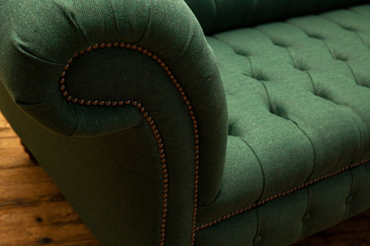 Klassische Polster Möbel Chesterfield Grüne Couch Textil Leder Stoff Sofa Sitzer