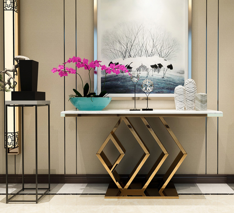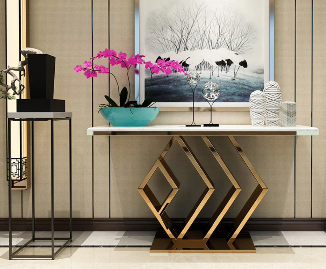 Konsole, Frisiertisch, Konsole aus Marmor und Stahl, Möbel