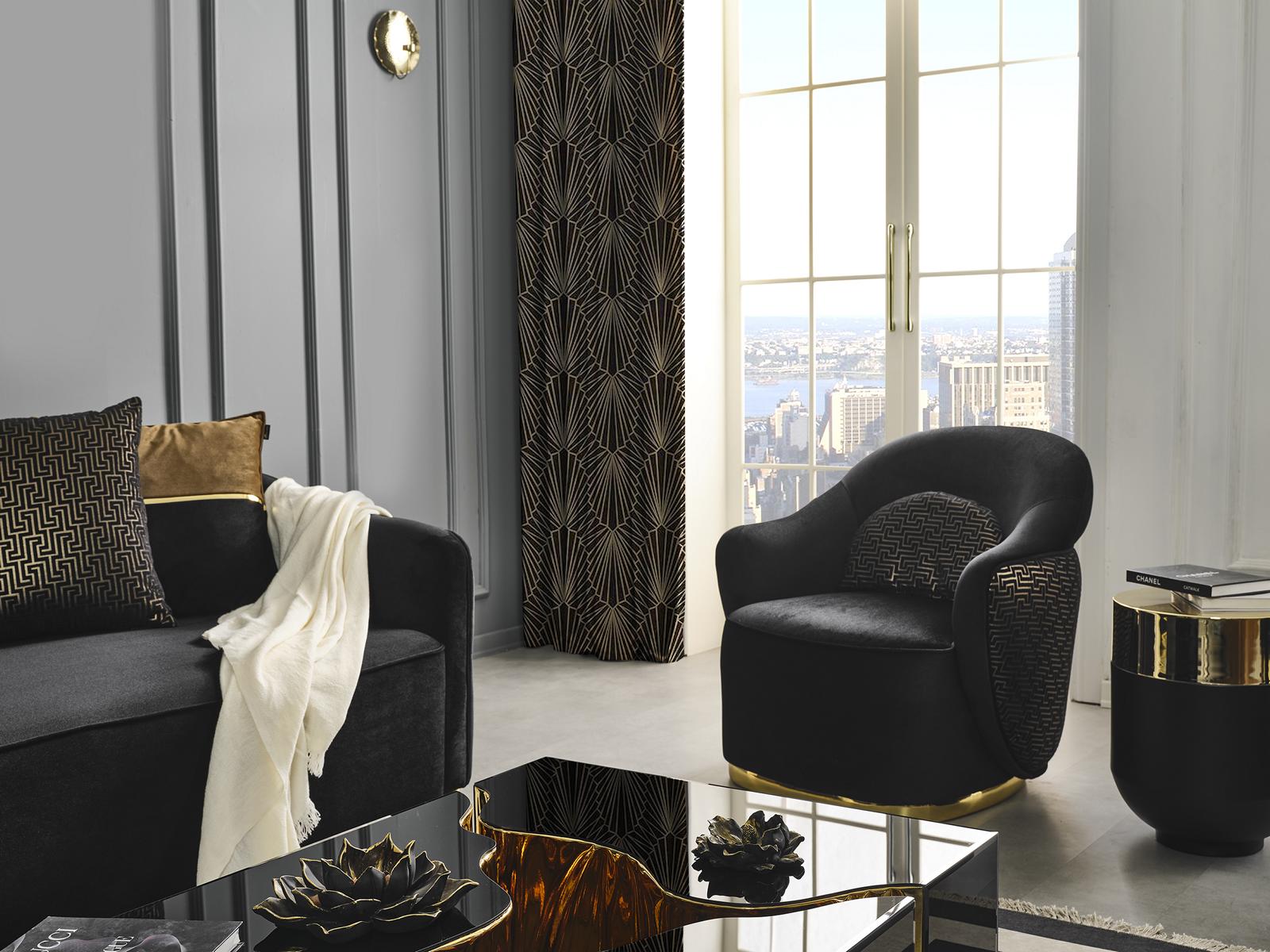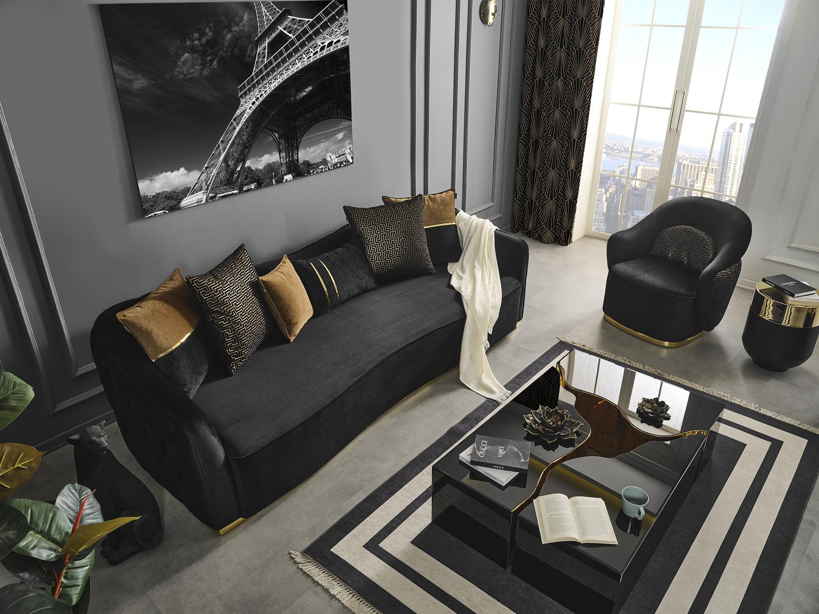 Sessel Wohnzimmer Couch Modern Textil Luxu Modern schwarz neu