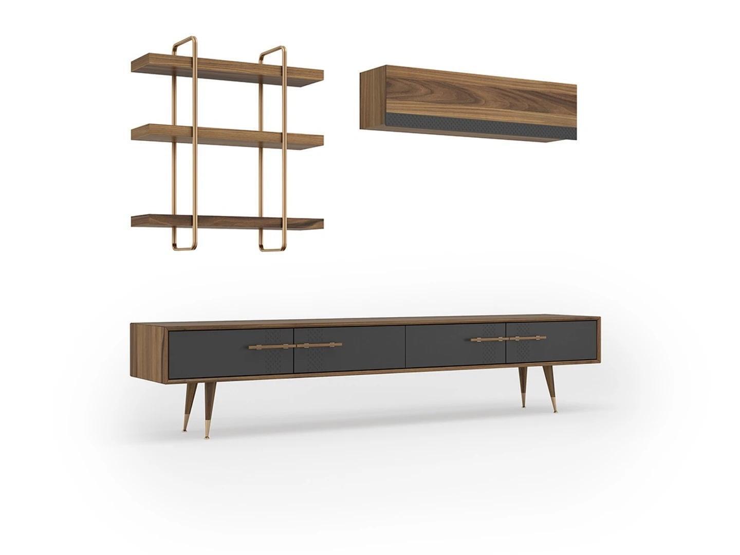 Modern Set TV-Ständer Design Wohnwand Wohnzimmer Wandregal Luxus Wandschrank
