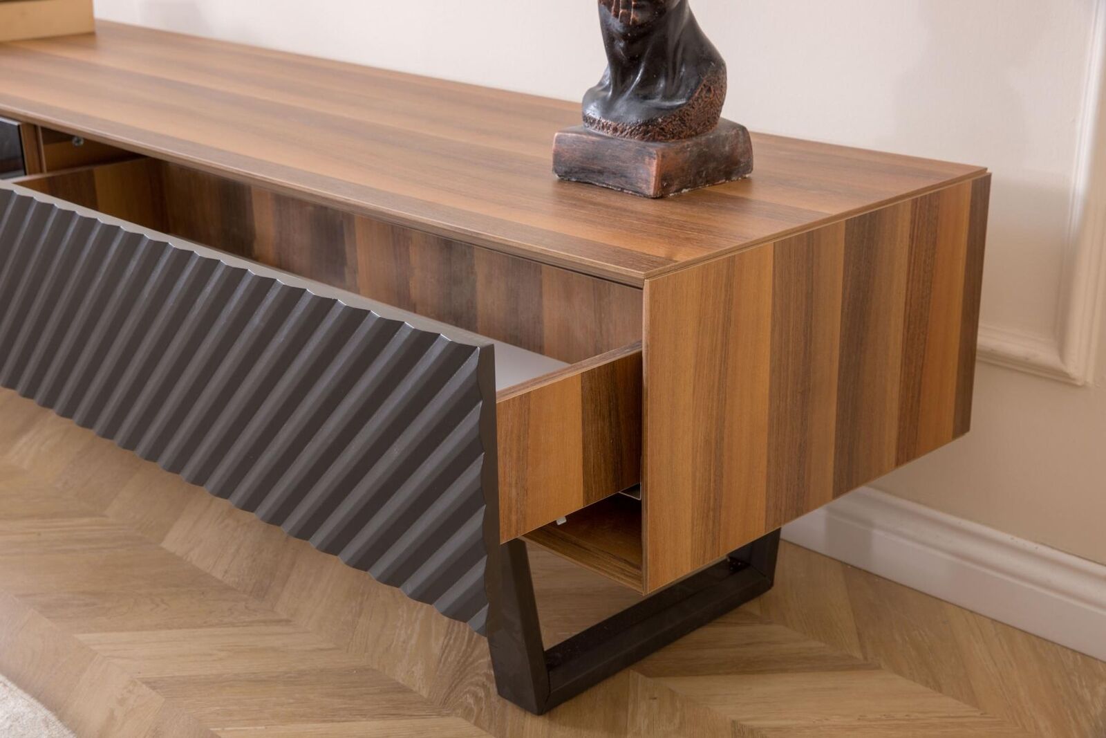 Entdecken Sie unser modernes Wohnzimmer-Set von XL Moebel! Diese stilvolle Wohnwand besteht aus einem TV-Ständer und zwei Hängeschränken, die Ihrem Wohnzimmer einen Hauch von Designer-Eleganz verleihen. Hergestellt aus hochwertigem Holz und Edelstahl, hat dieses Set die Maße TV-Ständer: ca. 210 x 50 x 50 cm und 2x Hängeschränke: ca. 30 x 25 x 90 cm. Die elegante Farbkombination und das zeitgemäße Design machen dieses Wohnzimmer-Set zu einem Highlight in jedem Zuhause. Perfekt für Ihre Unterhaltungsecke! Bestellen Sie jetzt und verschönern Sie Ihr Zuhause.