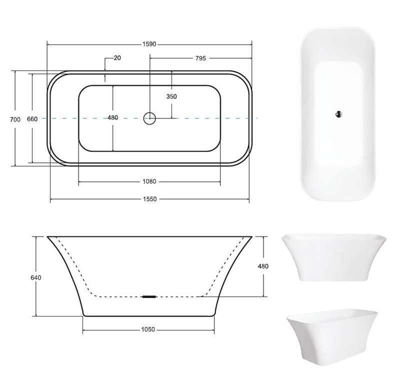 Exclusive freistehende Badewanne Acrylwanne Wanne Bad 160x70