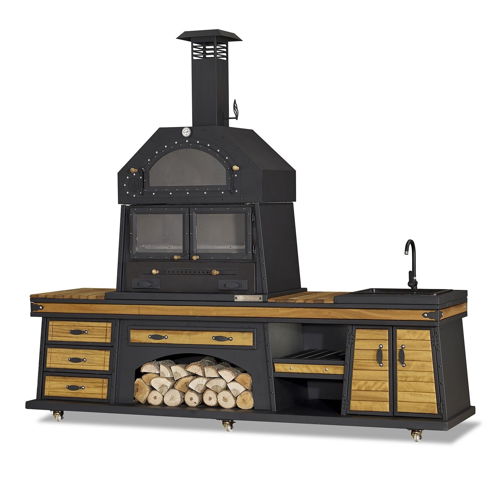Die Außenküche in Schwarz aus Holz und Edelstahl vereint zeitgenössisches Design mit exzellenter Funktionalität. Ihre elegante Farbgebung schafft eine harmonische Verbindung zur Natur, während die hochwertigen Materialien für Langlebigkeit und Widerstandsfähigkeit sorgen. Der raffinierte Einsatz von Schwarz und Braun verleiht dieser Küche eine subtile, aber markante Ästhetik, die jeden Außenbereich aufwertet. Mit großzügigem Stauraum und durchdachten Arbeitsflächen bietet sie nicht nur Komfort, sondern auch einen Hauch von Luxus für unvergessliche Grillabende und gesellige Zusammenkünfte. Diese Außenküche ist nicht nur ein Möbelstück, sondern ein Statement für einen exklusiven Lebensstil, das den hohen Ansprüchen einer anspruchsvollen Klientel gerecht wird. Wählen Sie diese Meisterleistung als Herzstück Ihres Außenbereichs und erleben Sie die Kunst des Kochens in vollendeter Form.