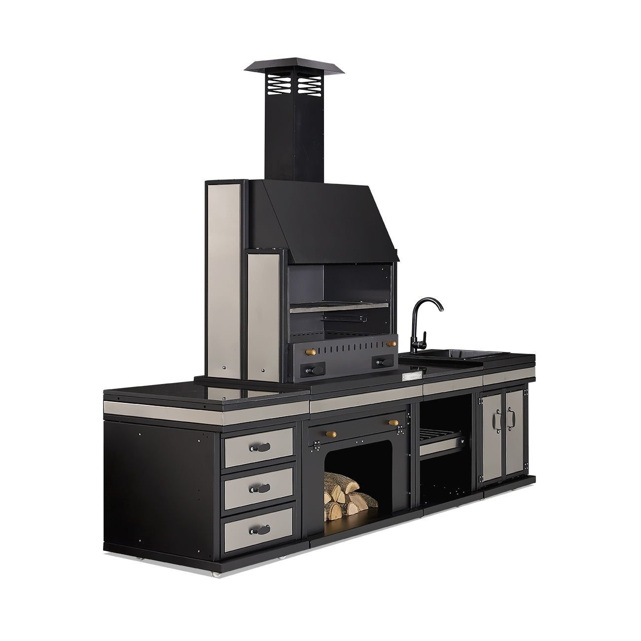 Moderne Außenküche aus Edelstahl in Schwarz