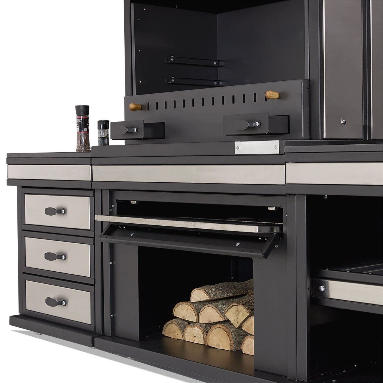 Moderne Außenküche aus Edelstahl in Schwarz | xlmoebel.de