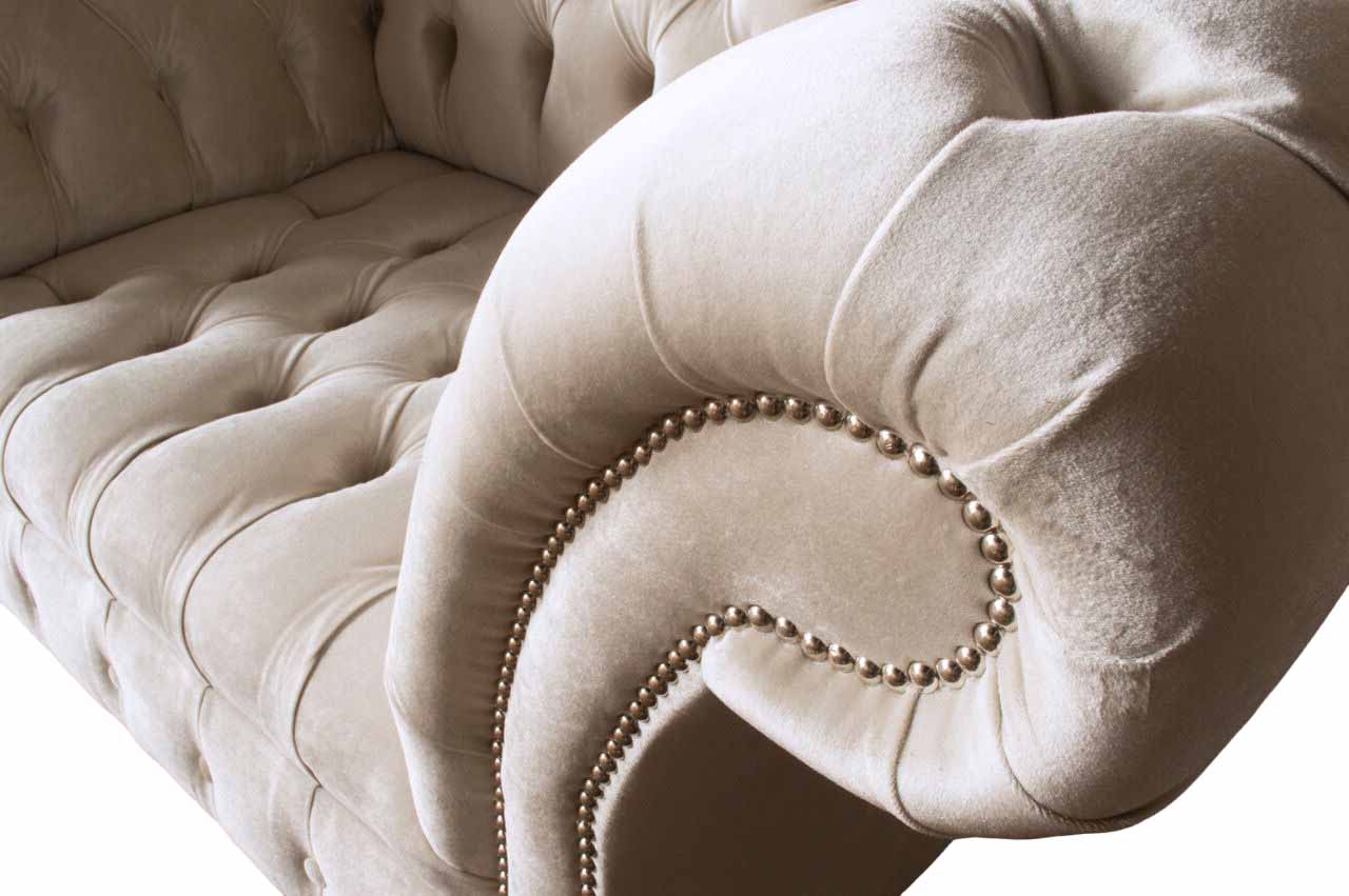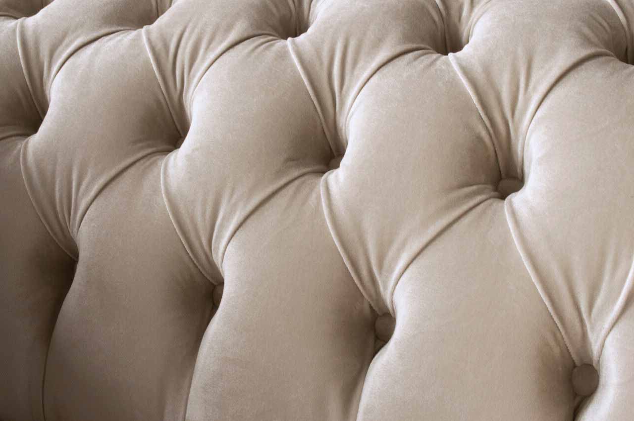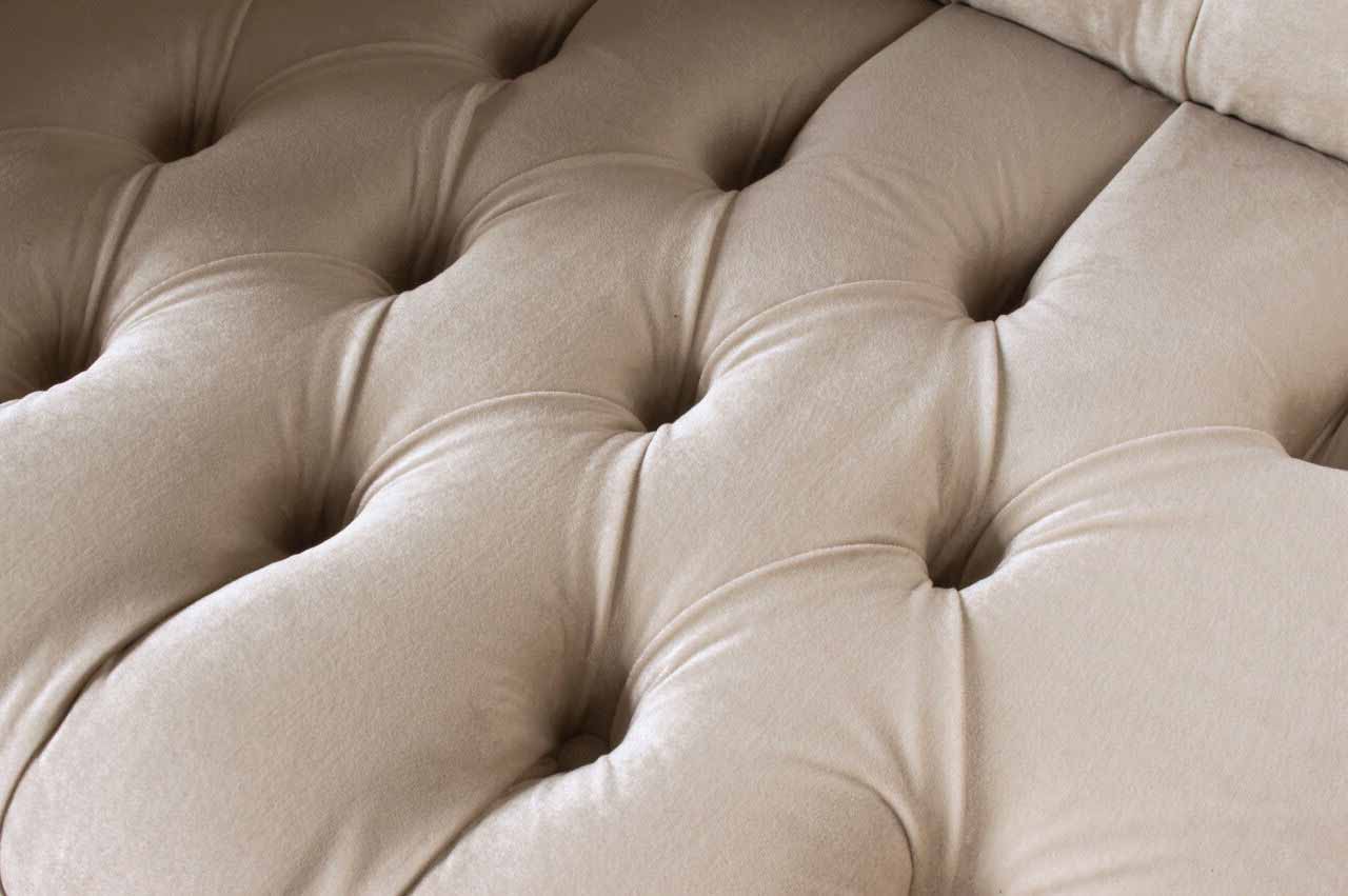 Das Couch Polster Sofa Textil Chesterfield Couchen 1,5 Sitzer Einsitzer in Rosa ist ein hochwertiges Möbelstück, das Eleganz und Komfort vereint. Mit Maßen von ca. 150 x 80 x 90 cm bietet dieses Sofa ausreichend Platz für entspannte Stunden alleine oder zu zweit. Die Sitzhöhe von ca. 42 cm und die Sitztiefe von ca. 52 cm sorgen für ein angenehmes Sitzerlebnis. Das Textilmaterial in Rosa verleiht dem Sofa eine charmante und einladende Optik, während das Innengestell aus echtem Holz für Stabilität und Langlebigkeit sorgt. Optional kann das Sofa mit verschiedenen Materialien wie Vollleder oder Premium Stoffen konfiguriert werden, um den eigenen Stil zu unterstreichen.
