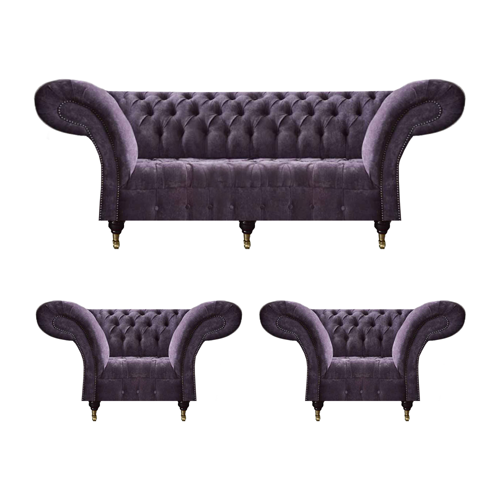 Lila Chesterfield Polstergarnitur Wohnzimmer 3-Sitzer Designer 2x Sessel
