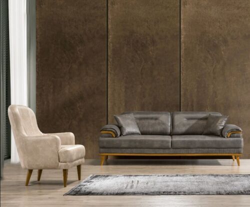 Verschönern Sie Ihr Wohnzimmer mit unserer modernen Wohnzimmer Stoffsofas Exklusive Couchgarnitur 3+1 Sitzer 2tlg! Unsere Sofagarnitur bietet sowohl einen großzügigen 3-Sitzer als auch einen gemütlichen Sessel, perfekt zum Entspannen nach einem langen Tag. Hergestellt aus hochwertigem Holz und Textil, sorgt dieses Set für Komfort und Stil zugleich. Der 3-Sitzer hat Maße von ca. 230 x 100 x 90 cm, während der Sessel ca. 78 x 85 x 100 cm misst. Die Sitzhöhe beträgt ca. 42 cm und die Sitztiefe ca. 64 cm - ideal zum Zurücklehnen und Relaxen. In der Farbe wie abgebildet gehalten, fügt sich dieses Set problemlos in jede Wohnzimmereinrichtung ein. Holen Sie sich jetzt Ihre neue Sofagarnitur und machen Sie Ihr Wohnzimmer zu einem Ort der Gemütlichkeit und Eleganz!