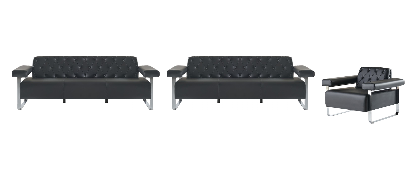 Das Luxus Komplett Sofas 3tlg Schwarz 3-Sitzer Chesterfield Sitzmöbel Modern ist eine elegante und zeitgemäße Wahl für Ihr Wohnzimmer. Dieses Set besteht aus zwei großzügigen 3-Sitzer Sofas und einem passenden Sessel, alle in einem stilvollen Schwarz gehalten. Die Maße der Sofas betragen ca. 210 x 90 x 73 cm, während der Sessel mit ca. 102 x 90 x 73 cm kompakter ist. Mit einer Sitzhöhe von ca. 44 cm und Sitztiefe von ca. 56 cm bieten diese Möbelstücke sowohl Komfort als auch Stil. Hergestellt aus hochwertigen Materialien wie Holz, Edelstahl und Kunstleder, ist dieses Set langlebig und pflegeleicht zugleich.