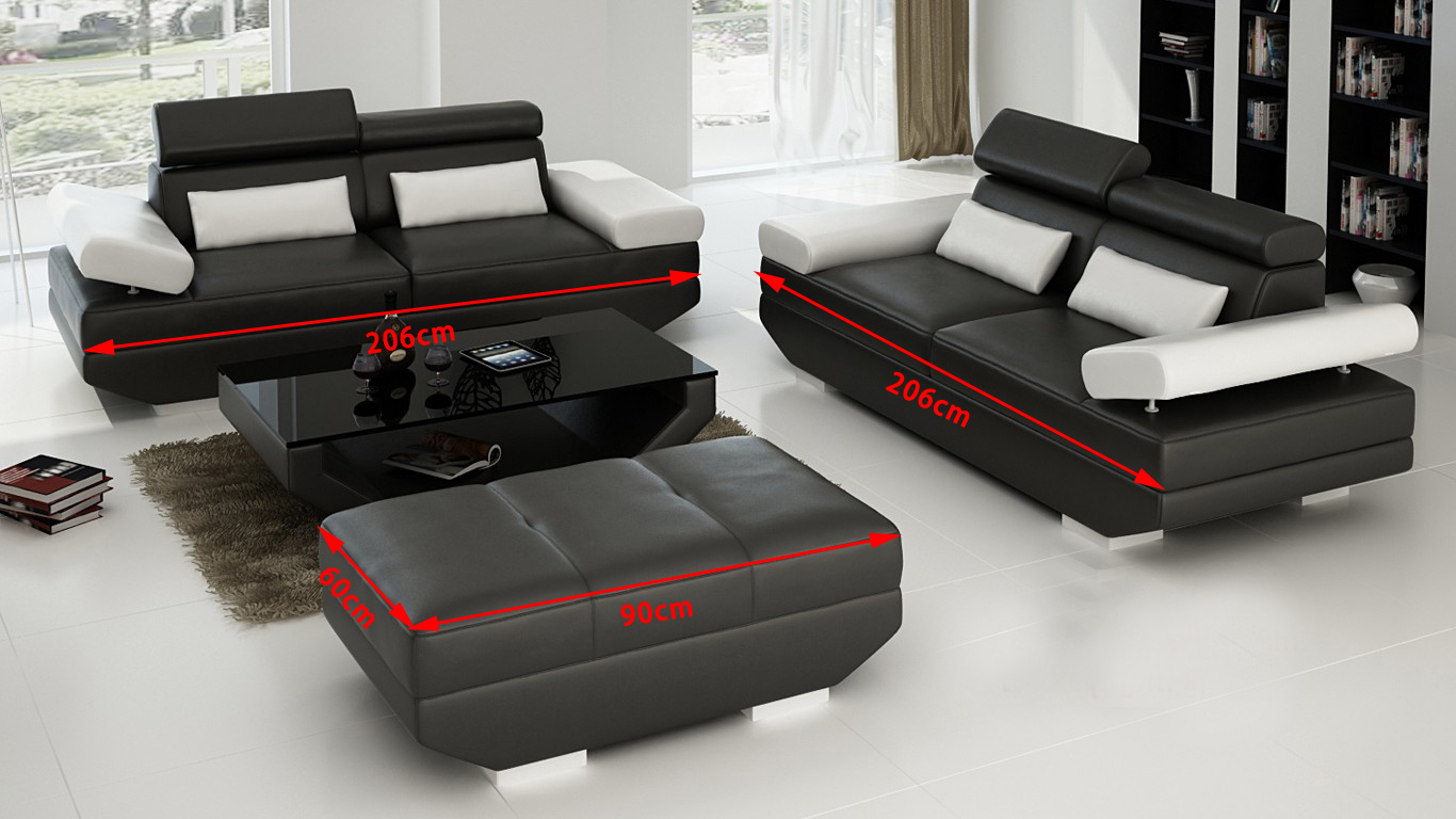 Erleben Sie den ultimativen Komfort und Stil mit unserer Luxus Möbel Sofagarnitur Couch! Diese elegante 3+3 Sitzer Couch wird mit einem passenden Hocker geliefert und ist das perfekte Highlight für Ihr Wohnzimmer. Hergestellt aus hochwertigem Premium Lederfaserstoff (70% Leder / 30% Polyester) bietet diese Sofagarnitur nicht nur eine luxuriöse Optik, sondern auch einen langlebigen und bequemen Sitz. Die Maße der Sofas betragen ca. 206 cm Länge, 88 cm Höhe und 90 cm Tiefe, mit einer Sitztiefe von ca. 59 cm und einer Sitzhöhe von ca. 45 cm. Der Hocker misst ca. 90 x 60 cm. Wählen Sie Ihre Lieblingsfarbe aus einer Vielzahl von Optionen oder kontaktieren Sie uns für individuelle Farb- und Größenanpassungen. Optional können Sie zwischen verschiedenen Materialgruppen wählen, darunter Premium Echtleder und Premium Textilstoff, um die Möbel nach Ihren Wünschen anzupassen. Mit einem soliden Innengestell aus echtem Holz, einer Unterfederung und einem Federkern bietet diese Couch nicht nur Stil, sondern auch Qualität und Komfort. Gönnen Sie sich und Ihrer Familie das Beste mit unserer Luxus Sofagarnitur!