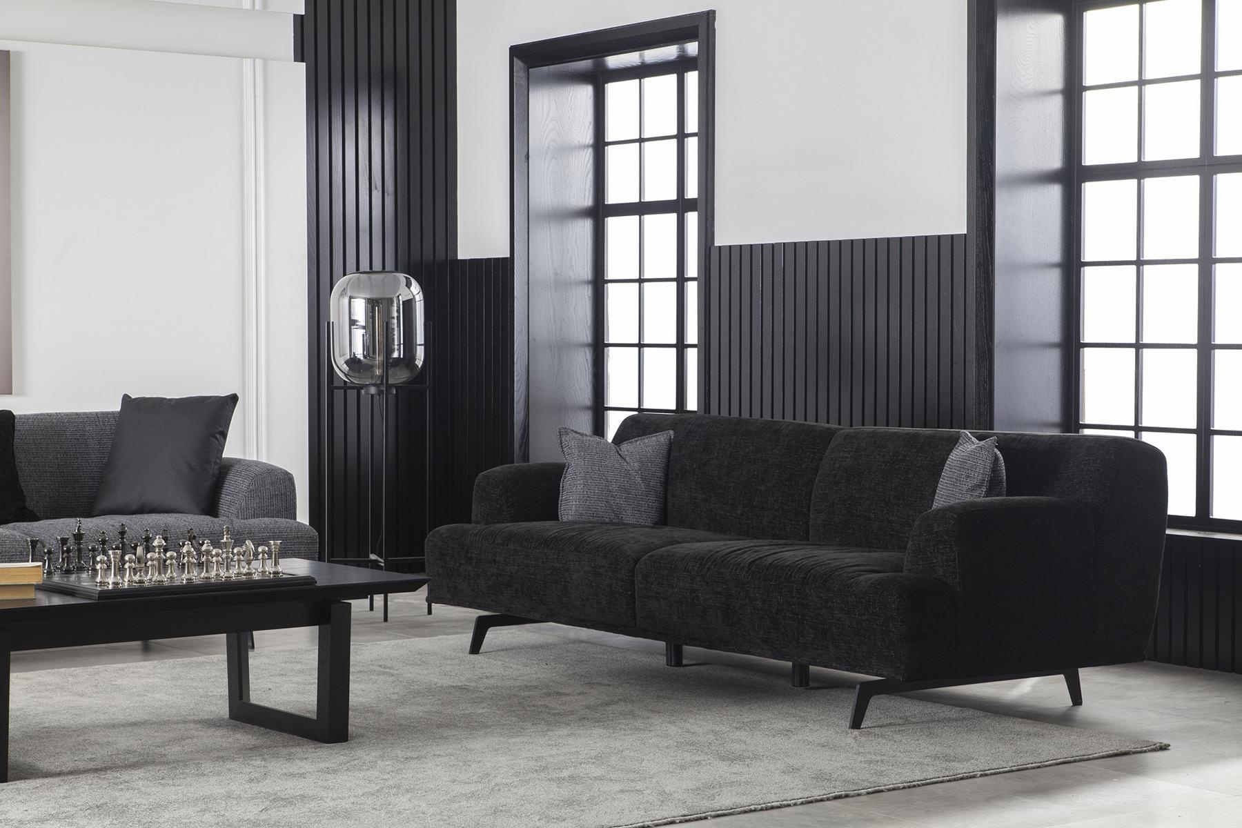 Das Sofa Set 3+1 vereint zeitlose Eleganz und unvergleichlichen Komfort in einem Design, das höchste Ansprüche erfüllt. Gefertigt aus hochwertigem schwarzen Polyester, strahlt es eine luxuriöse Anziehungskraft aus und passt harmonisch in exklusive Wohnräume. Die weichen Polster laden zum Verweilen ein und bieten ein unvergleichliches Sitzerlebnis. Dieses Möbelstück ist nicht nur ein Blickfang, sondern auch ein Ausdruck eines gehobenen Lebensstils. Mit über 20 Jahren Erfahrung in der Herstellung edler Möbel garantiert unsere Marke Qualität und Stil, die auch den anspruchsvollsten Geschmack befriedigen. Wählen Sie die Sofagarnitur, die Ihre Wohnräume perfekt ergänzt und eine Atmosphäre von Raffinesse und Komfort schafft.