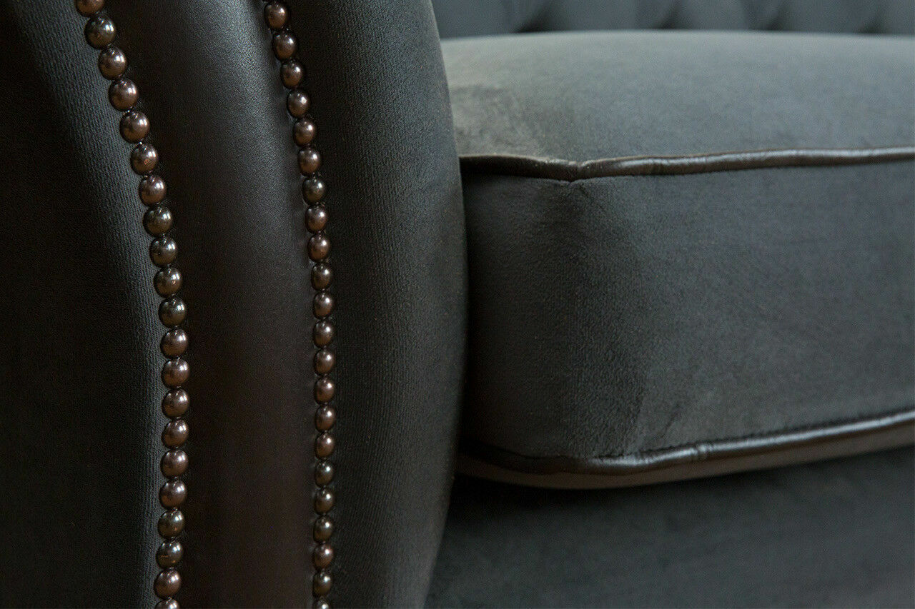 Klassische Chesterfield Couch 4 Sitzer Sofa Couch Samt Leder Design Schwarz Neu
