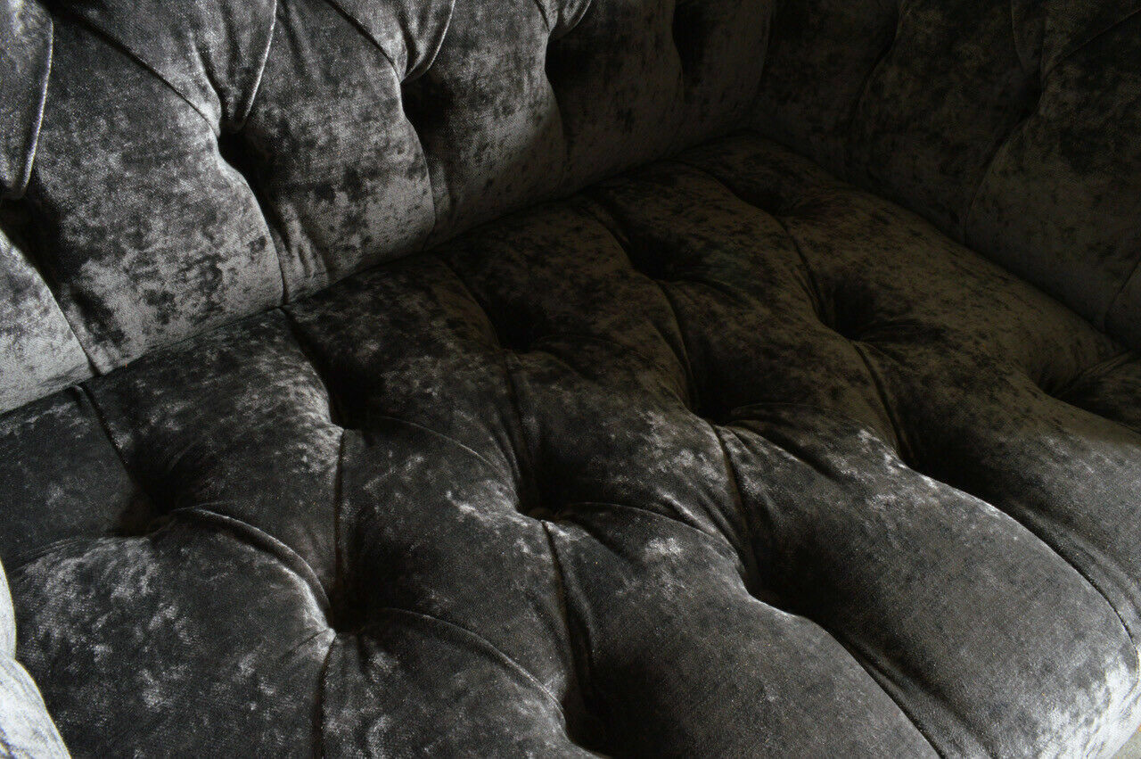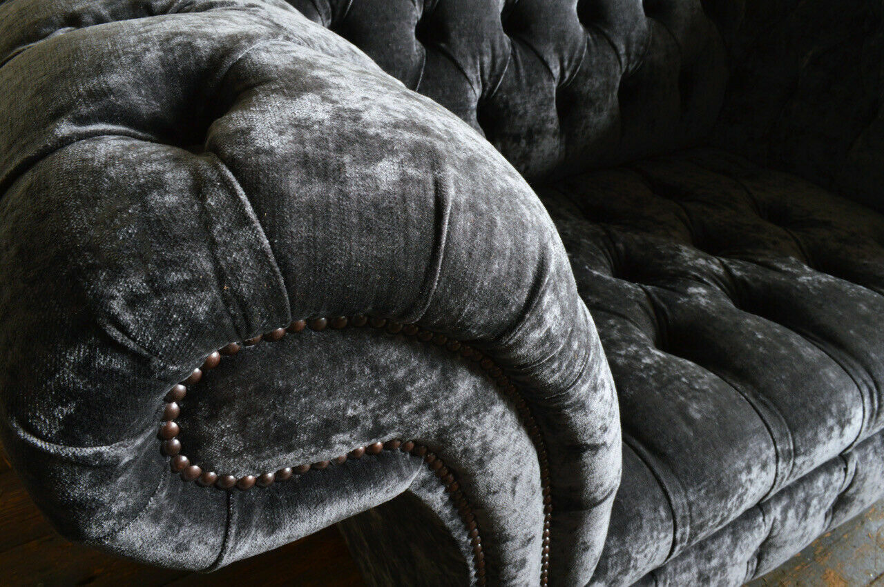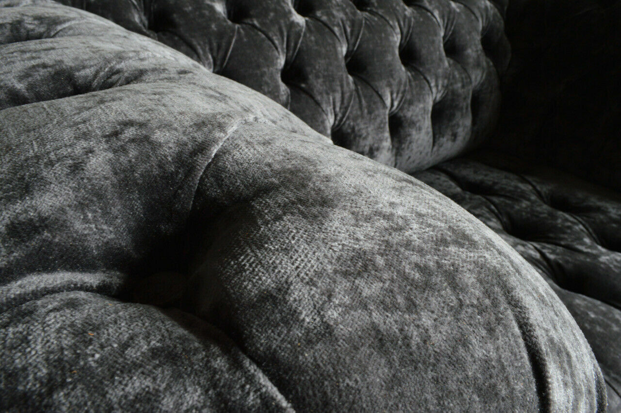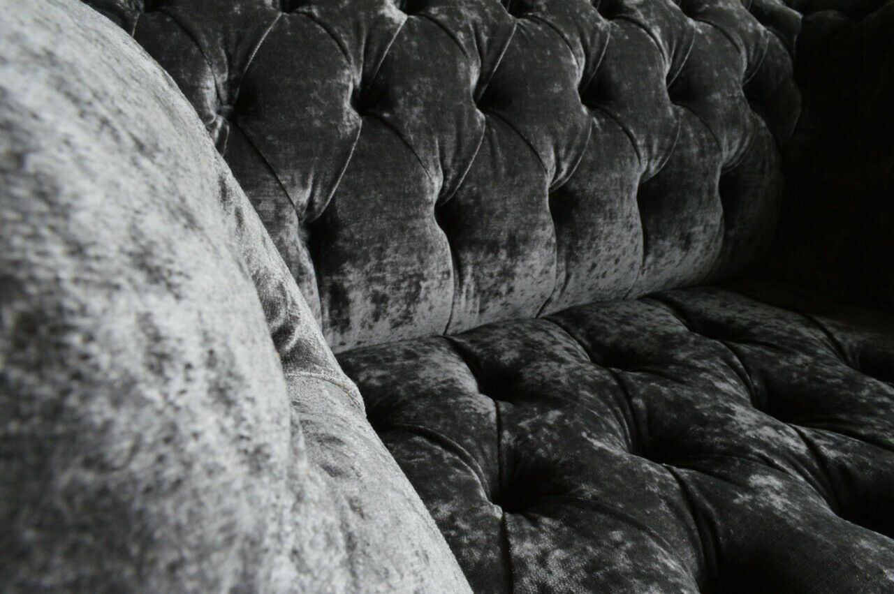 Erwerben Sie jetzt unsere Designer Chesterfield Graue Luxus Couch 4-Sitzer! Dieses stilvolle Sofa ist der Inbegriff von Luxus und Komfort. Mit einer Länge von ca. 265 cm und einer gemütlichen Sitzhöhe von ca. 42 cm lädt es zum Entspannen ein. Die freie Farbwahl ermöglicht es Ihnen, das Sofa perfekt an Ihre Einrichtung anzupassen. Hergestellt aus hochwertigem Textilmaterial, bietet dieses Designer-Sofa optional verschiedene Gruppen zur Auswahl: Premium Kunstleder/Stoff, Premium Echtleder, Premium Samt Stoff und Magic Home (Fleckenabweisender Stoff). Entscheiden Sie sich für italienisches Rindsleder für eine luxuriöse Note – sogar mit echten Swarovski Kristallsteinen erhältlich. Das Sofa verfügt über ein Innengestell aus echtem Holz und eine Unterfederung mit Federkern, was für Langlebigkeit und Stabilität sorgt. Genießen Sie luxuriösen Komfort und zeitloses Design mit diesem Designer Chesterfield Sofa. Gönnen Sie sich und Ihrem Zuhause eine elegante Note!