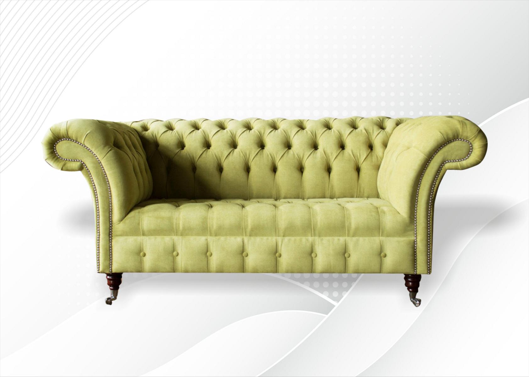 Entdecken Sie das neue Design der Chesterfield 2-Sitzer Couch für Ihr Wohnzimmer! Dieses stilvolle Sofa ist mit hochwertigem Stoff in verschiedenen Farben erhältlich, darunter Grautöne, Pastellfarben sowie leuchtende Gelb- und Grüntöne. Das Sofa hat eine angenehme Sitzhöhe von ca. 44 cm und eine Sitztiefe von ca. 60 cm. Wählen Sie aus verschiedenen Materialoptionen wie Premium Kunstleder/Stoff, Echtleder, Samtstoff oder Fleckenabweisendem Stoff. Der Chesterfield 2-Sitzer ist ca. 185 cm breit, 98 cm tief und 79 cm hoch. Optional sind auch größere 3-Sitzer, 4-Sitzer oder 5-Sitzer erhältlich. Auf Wunsch kann das Sofa auch nach Ihren individuellen Maßen angefertigt werden. Mit einem Innenrahmen aus echtem Holz und Federkern bietet dieses Sofa höchsten Komfort und Langlebigkeit. Wählen Sie zwischen klassischen Knöpfen, funkelnden Kristallsteinen oder echten Swarovski Kristallen zur Verzierung. Verleihen Sie Ihrem Wohnbereich einen Hauch von Luxus und Gemütlichkeit mit dieser einladenden 2-Sitzer Couch!