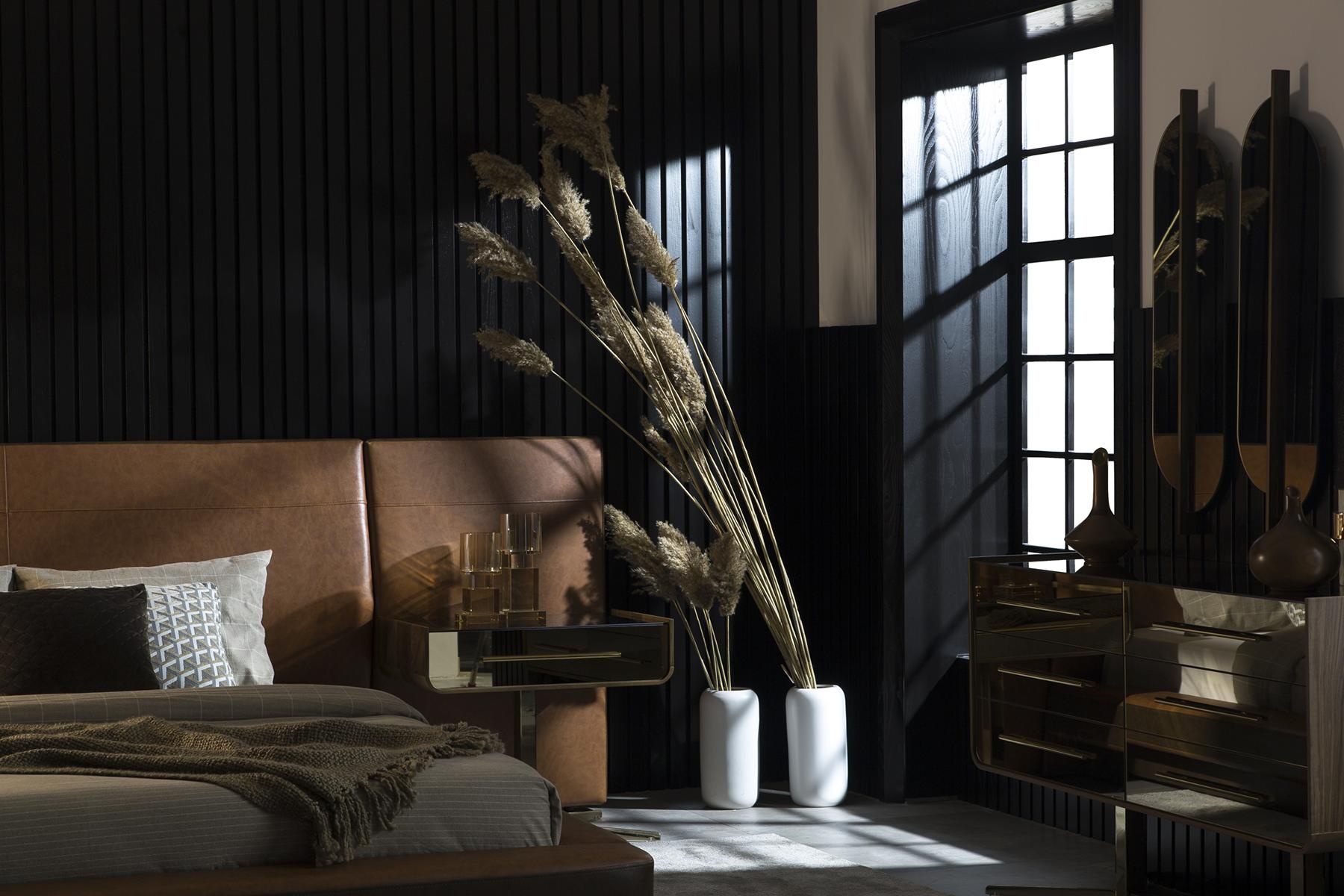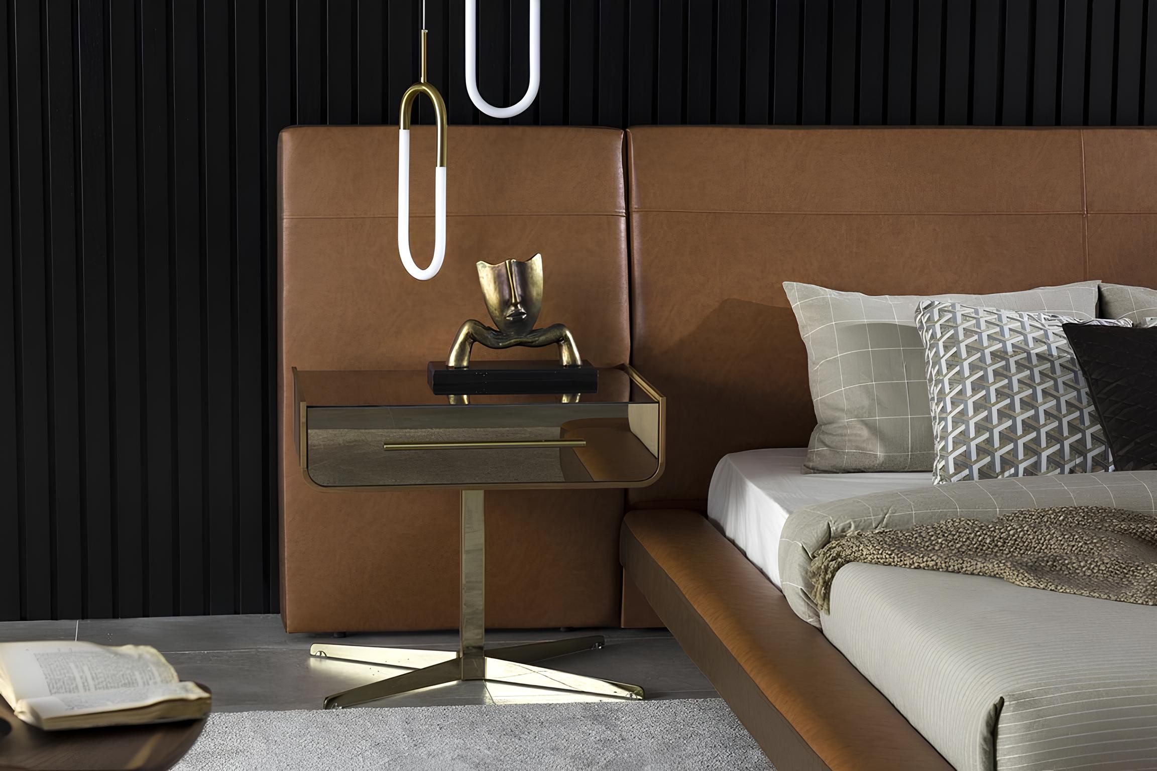 Erleben Sie das Design Schlafzimmer Bett mit zwei Luxus Nachttischen, ein Meisterwerk, das Eleganz und Funktionalität vereint. Gefertigt aus hochwertigem braunem Polyester, strahlt es eine zeitlose Raffinesse aus und fügt sich harmonisch in jede exklusive Wohnumgebung ein. Die edlen Glastische der Nachttische setzen stilvolle Akzente und bieten gleichzeitig praktischen Stauraum. Jedes Detail dieses Bettes ist darauf ausgerichtet, ein Höchstmaß an Komfort und Luxus zu gewährleisten. Nach 20 Jahren Erfahrung in der Schaffung erlesener Möbel, verkörpert dieses Stück das Streben nach einem Lebensstil, der Eleganz und Stil in jeden Raum integriert. Gönnen Sie sich das Gefühl von Luxus und verwandeln Sie Ihr Schlafzimmer in eine Oase des Wohlbefindens.