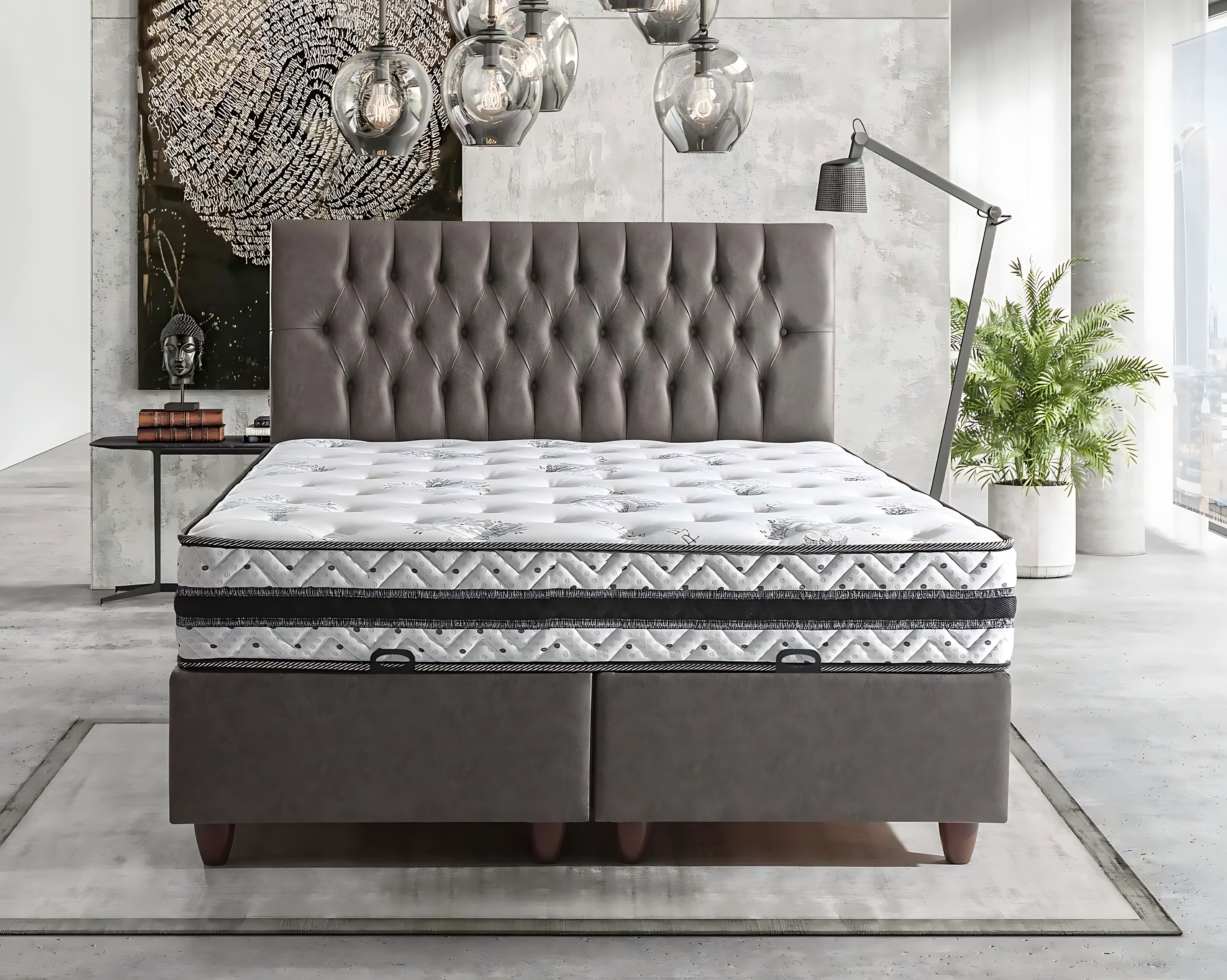 Die weiche Kontur des Bett mit Matratze schafft eine sanfte Atmosphäre.