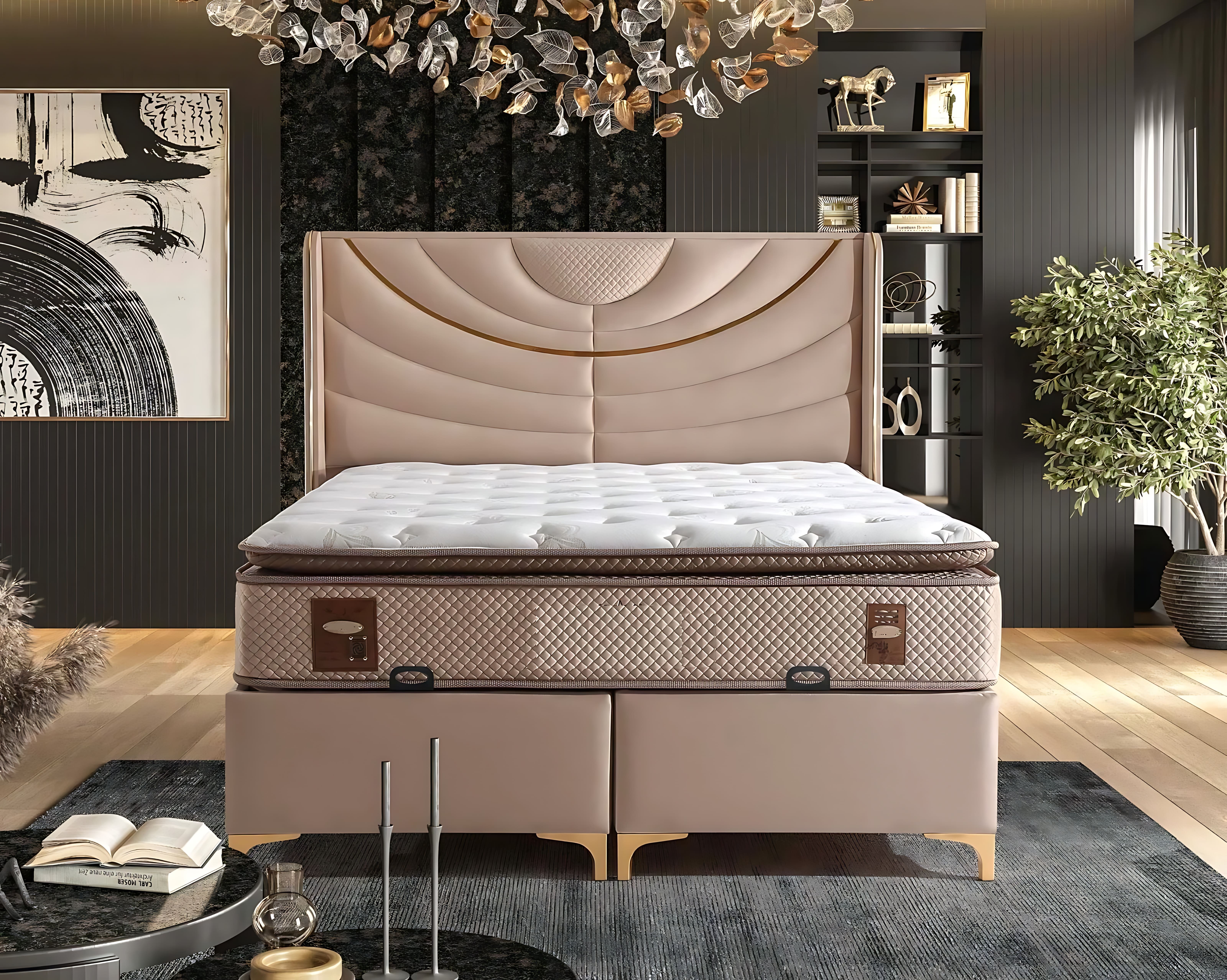 Das elegante beige Bett mit Matratze aus Textil und Holz vereint zeitloses Design mit herausragender Handwerkskunst. Die sanfte, beige Farbgebung strahlt Ruhe und Harmonie aus und fügt sich nahtlos in jede exklusive Inneneinrichtung ein. Hergestellt aus hochwertigem Holz, bietet es nicht nur Stabilität, sondern auch eine warme, einladende Atmosphäre. Die sorgfältig ausgewählte Textilmatratze garantiert höchsten Schlafkomfort und unterstützt ein gesundes Schlafumfeld. Dieses Bett ist mehr als nur ein Möbelstück; es ist ein Statement für einen anspruchsvollen Lebensstil. Lassen Sie sich von der schlichten Eleganz und der Qualität, die seit 20 Jahren geschätzt wird, verführen. Ein unverzichtbares Element für Ihr luxuriöses Zuhause.