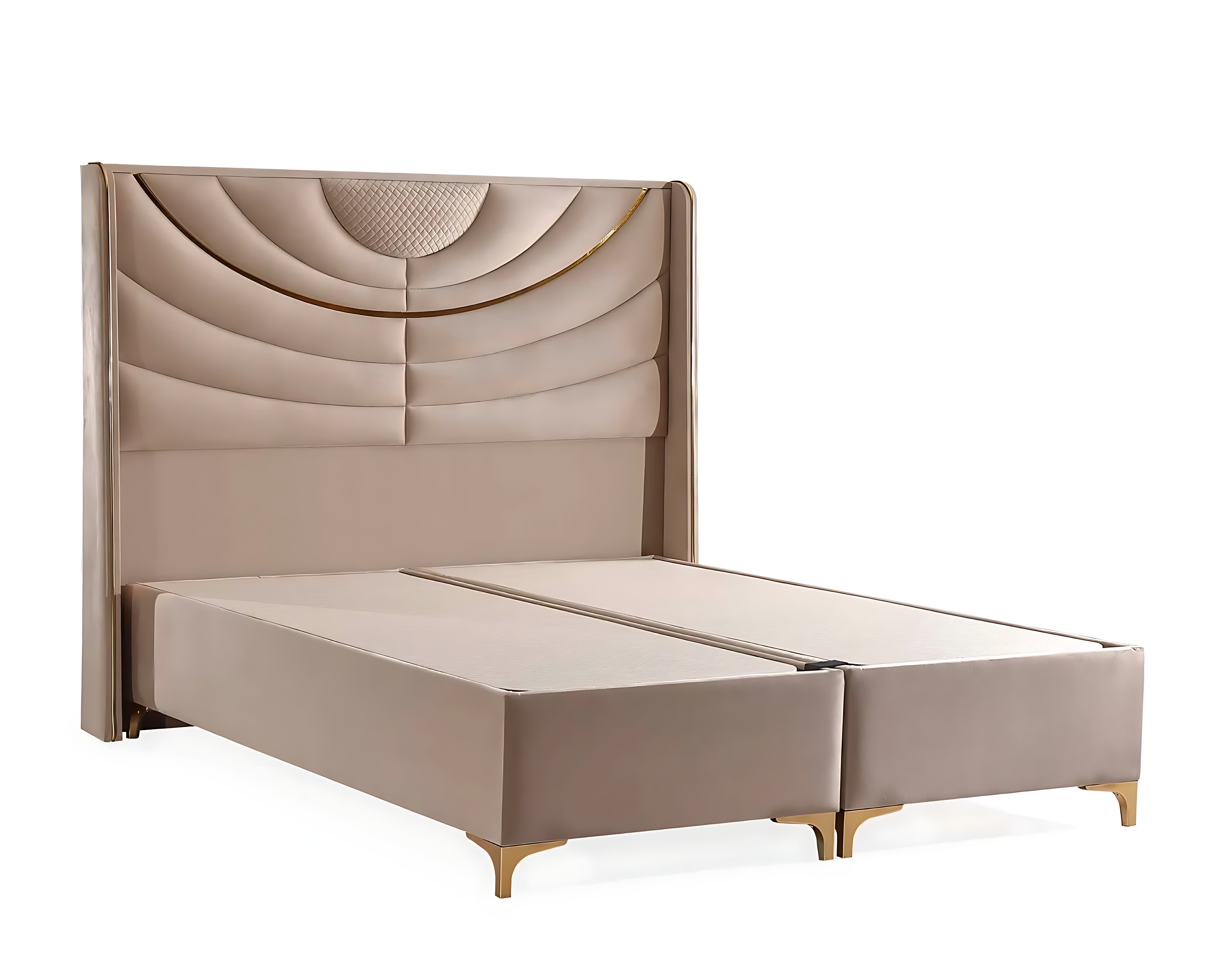 Elegantes Beiges Bett mit Matratze aus Textil und Holz | xlmoebel.de
