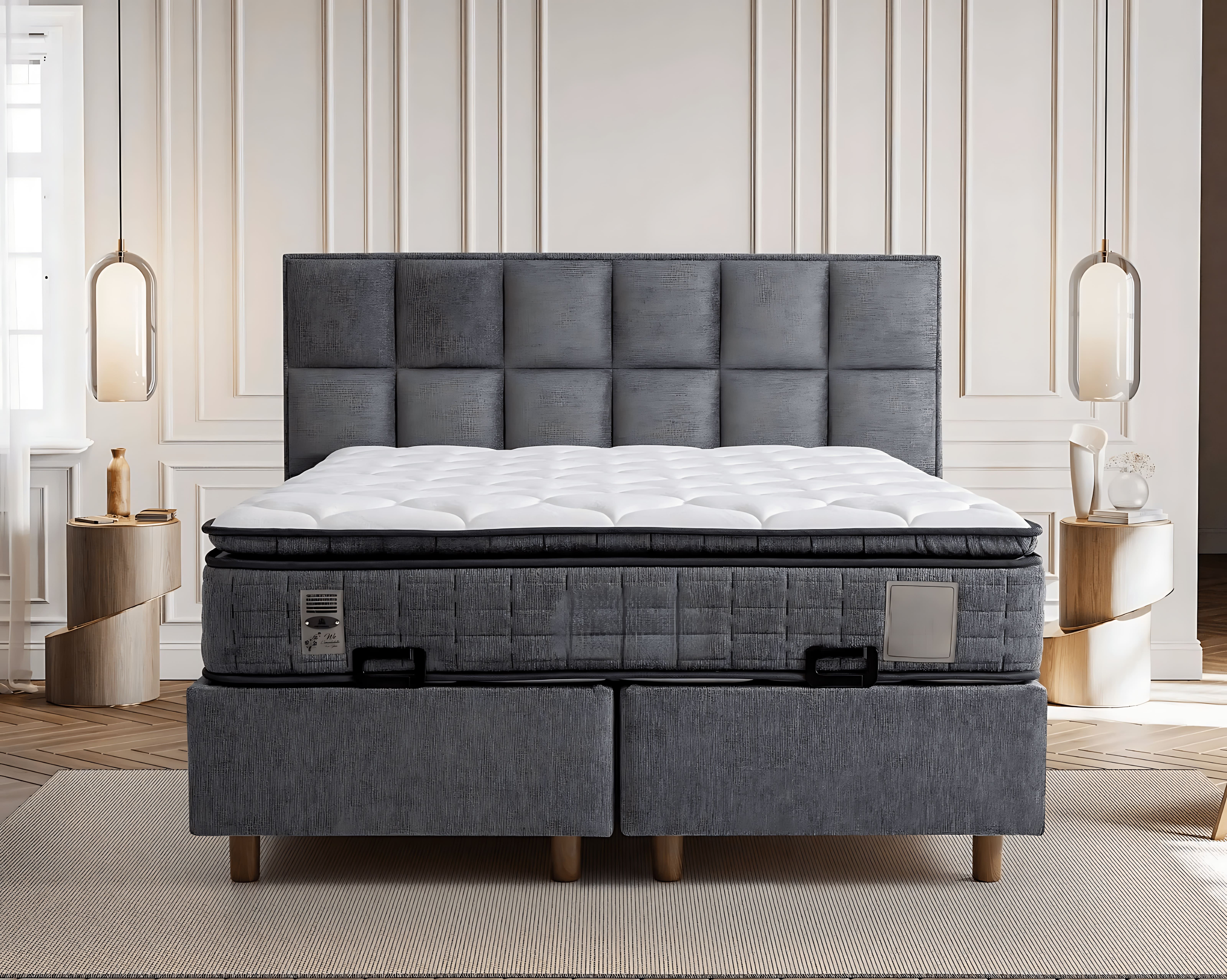 Das grau moderne Bett vereint zeitgenössisches Design mit erlesener Handwerkskunst. Gefertigt aus hochwertigem Holz, strahlt es eine subtile Eleganz aus, die in jedem Schlafzimmer zum Ausdruck kommt. Die exquisite Textilmatratze sorgt für unvergleichlichen Komfort und unterstützt eine erholsame Nachtruhe. Jedes Detail dieses Bettes zeugt von der Leidenschaft und Expertise, die unsere Marke seit über 20 Jahren prägt. Die harmonische Farbgebung und die klaren Linien verleihen Ihrem Raum eine exklusive Note und schaffen eine Atmosphäre des Luxus. Dieses Bett ist nicht nur ein Möbelstück, sondern ein Statement für einen anspruchsvollen Lebensstil, der höchste Ansprüche an Ästhetik und Funktionalität stellt.