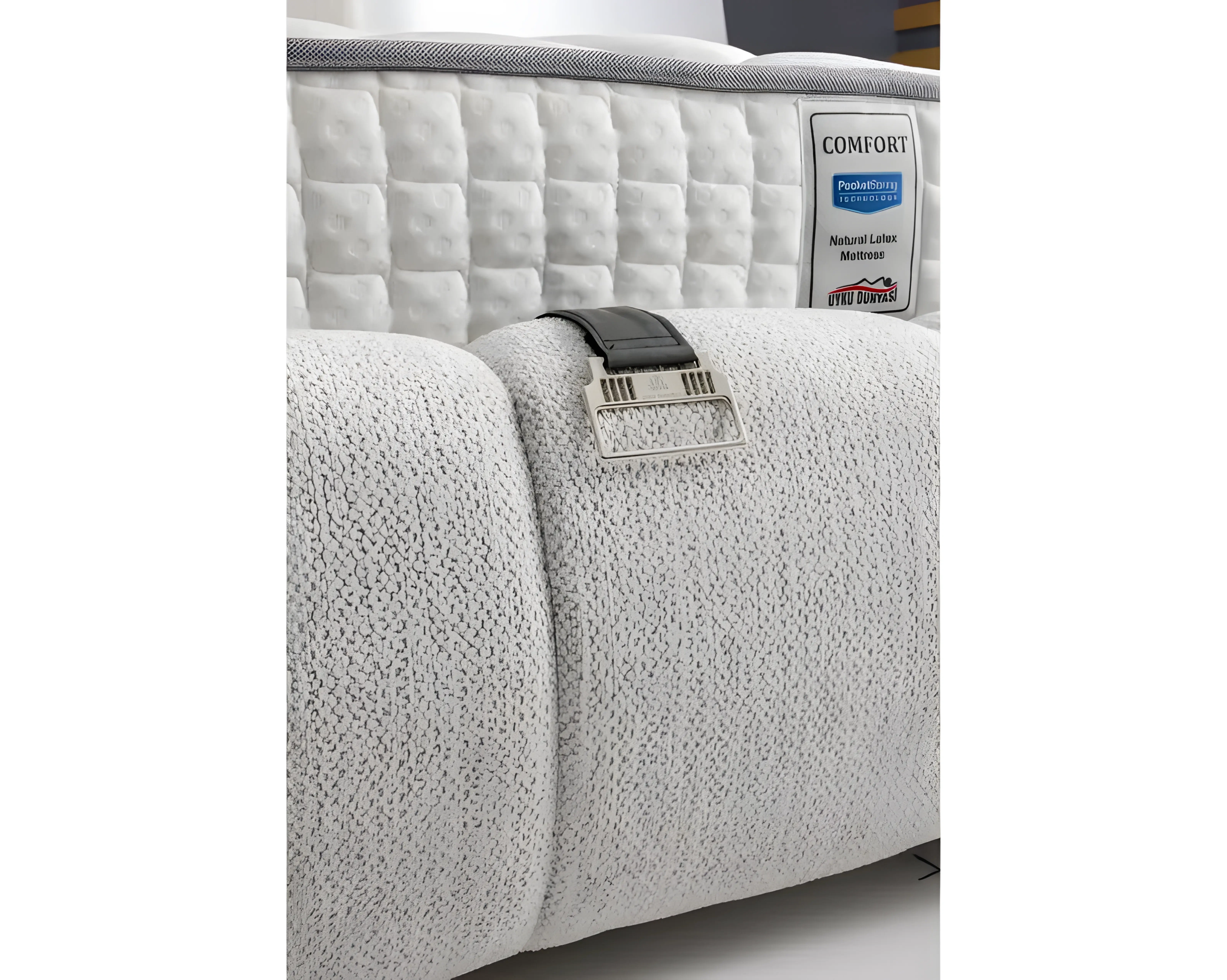 Weißes modernes Bett aus Textil mit hochwertiger Matratze