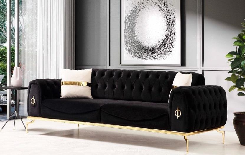 Sofagarnitur Luxus Chesterfield Sitzgruppe Dreisitzer Schwarz 3+3 Sitz